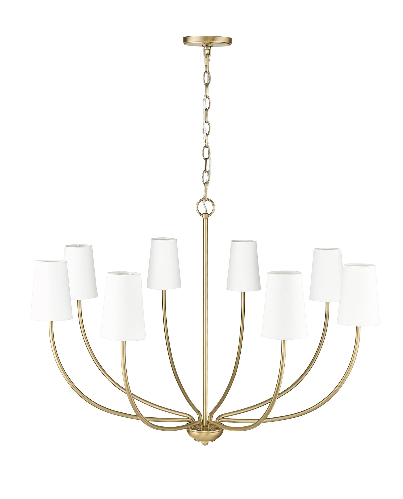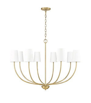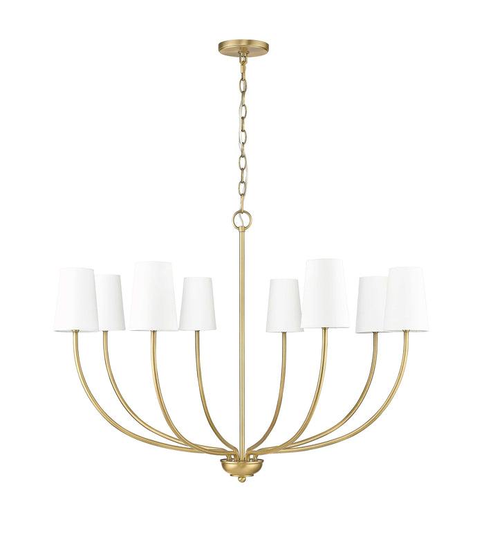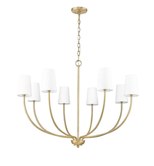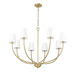 8 Lamps Kandor Chandelier - Vintage Brass - White Fabric Shade - 38in Diameter - E12 Candelabra Base