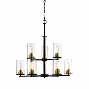 9 Lamps Pasadena Chandelier - Matte Black / Heirloom Bronze - Clear Glass - 28.5in Diameter - E26 Medium Base