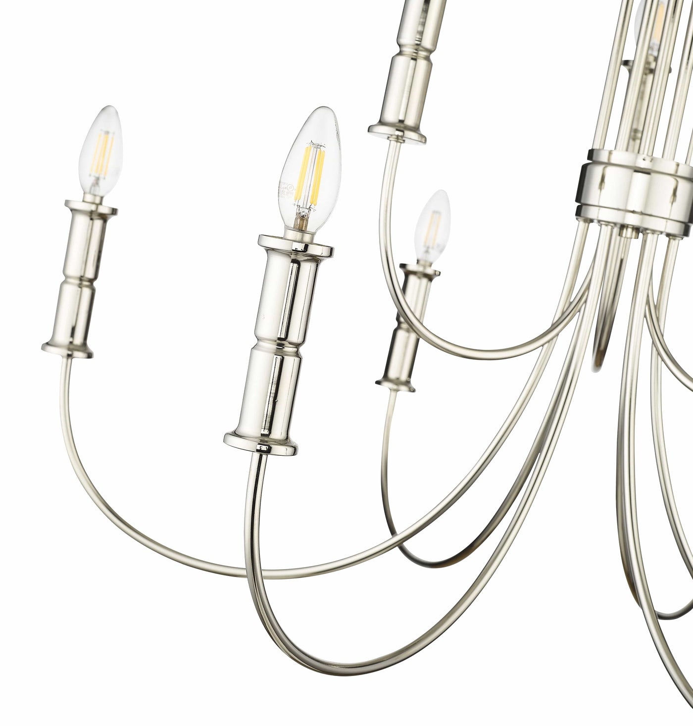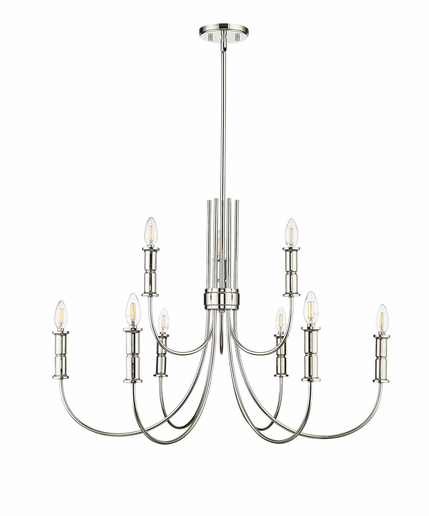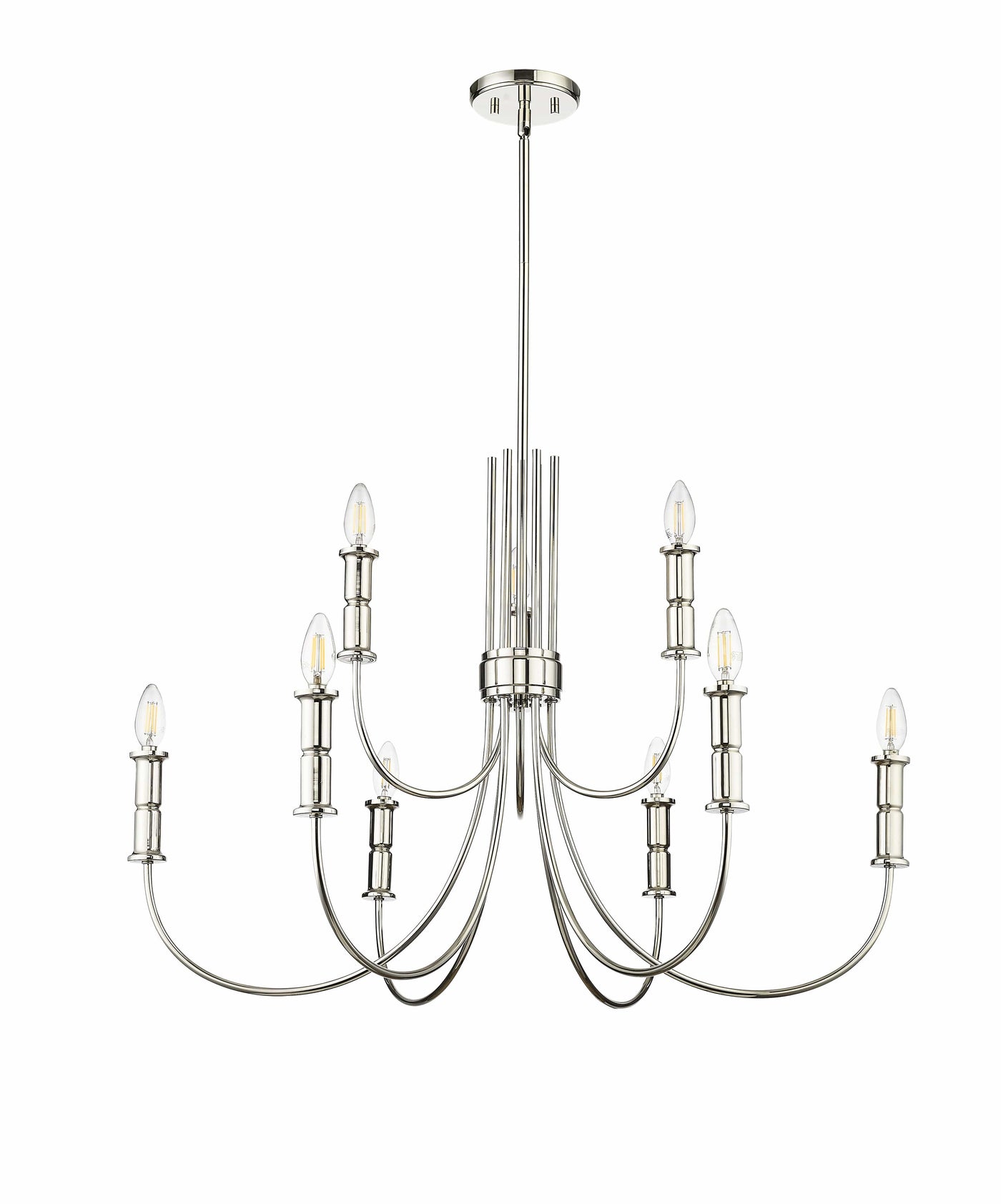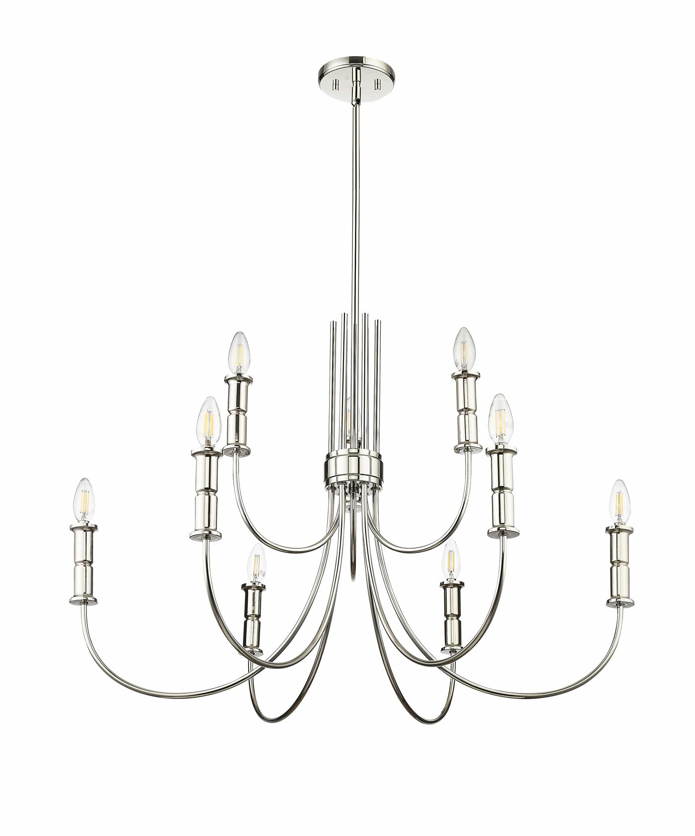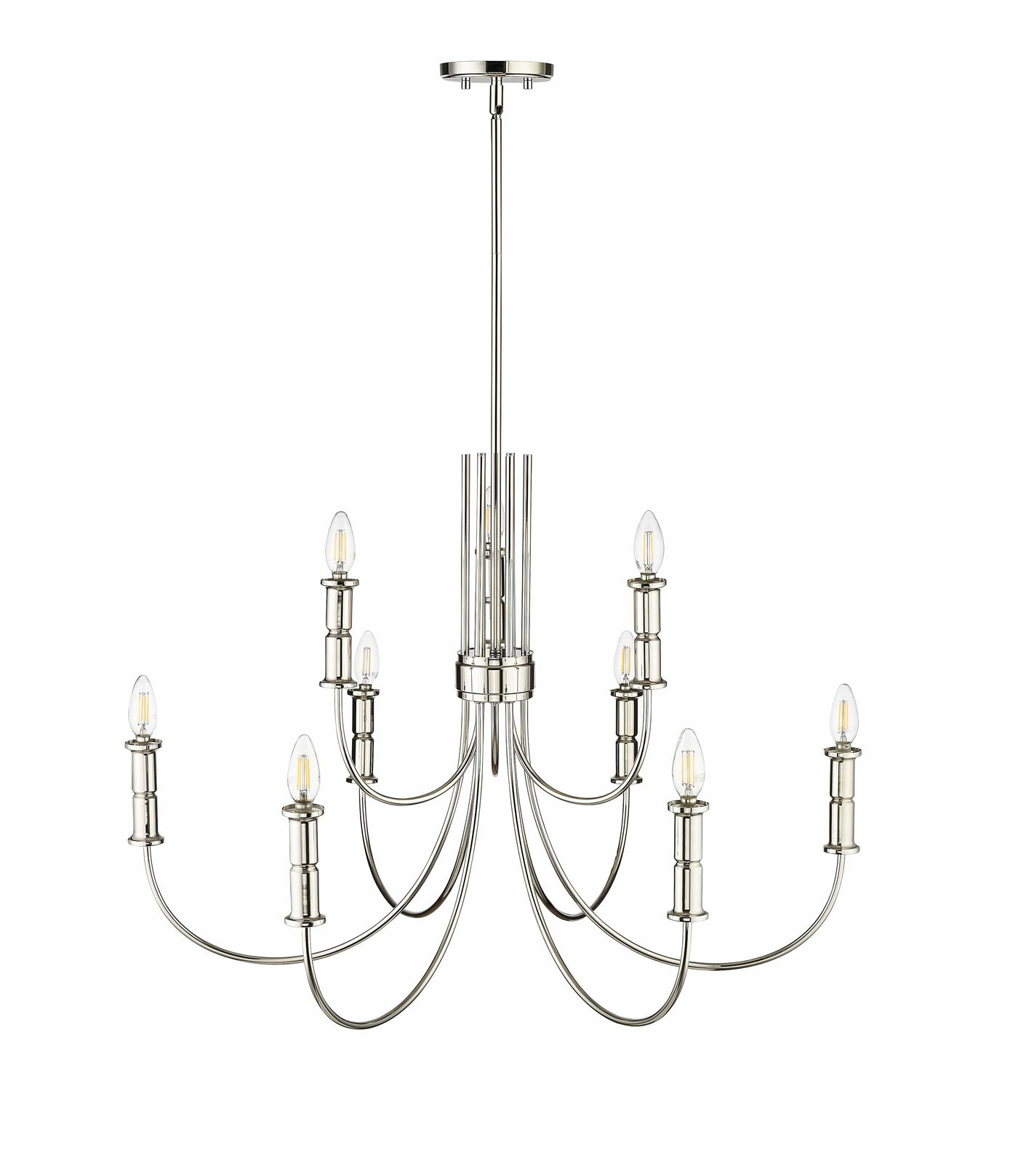 9 Lamps Potiss Chandelier - Polished Nickel - 34in Diameter - E12 Candelabra Base