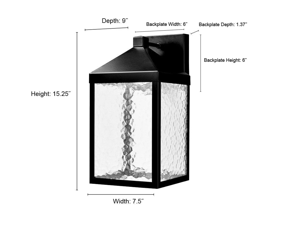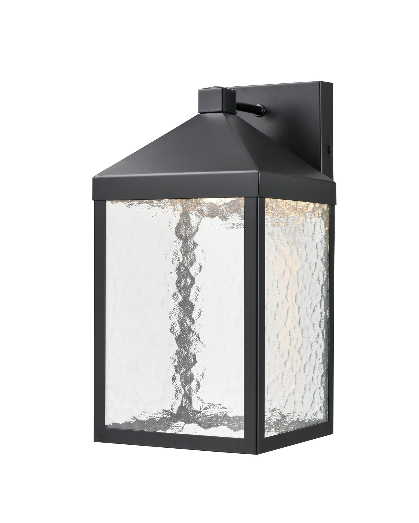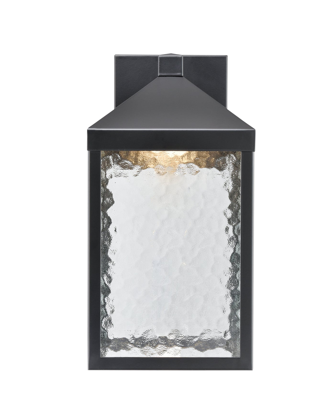 Aaron Outdoor Wall Lamp - Powder Coated Black - Clear Textured Glass - 11W Integrated LED Module - 900 Lm - 9in. Extension - 3000K Warm White
