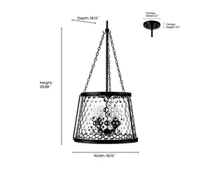 Adabella Pendant - Matte Black - Clear Hammered Glass - 18.125in. Diameter - E12 Candelabra Base