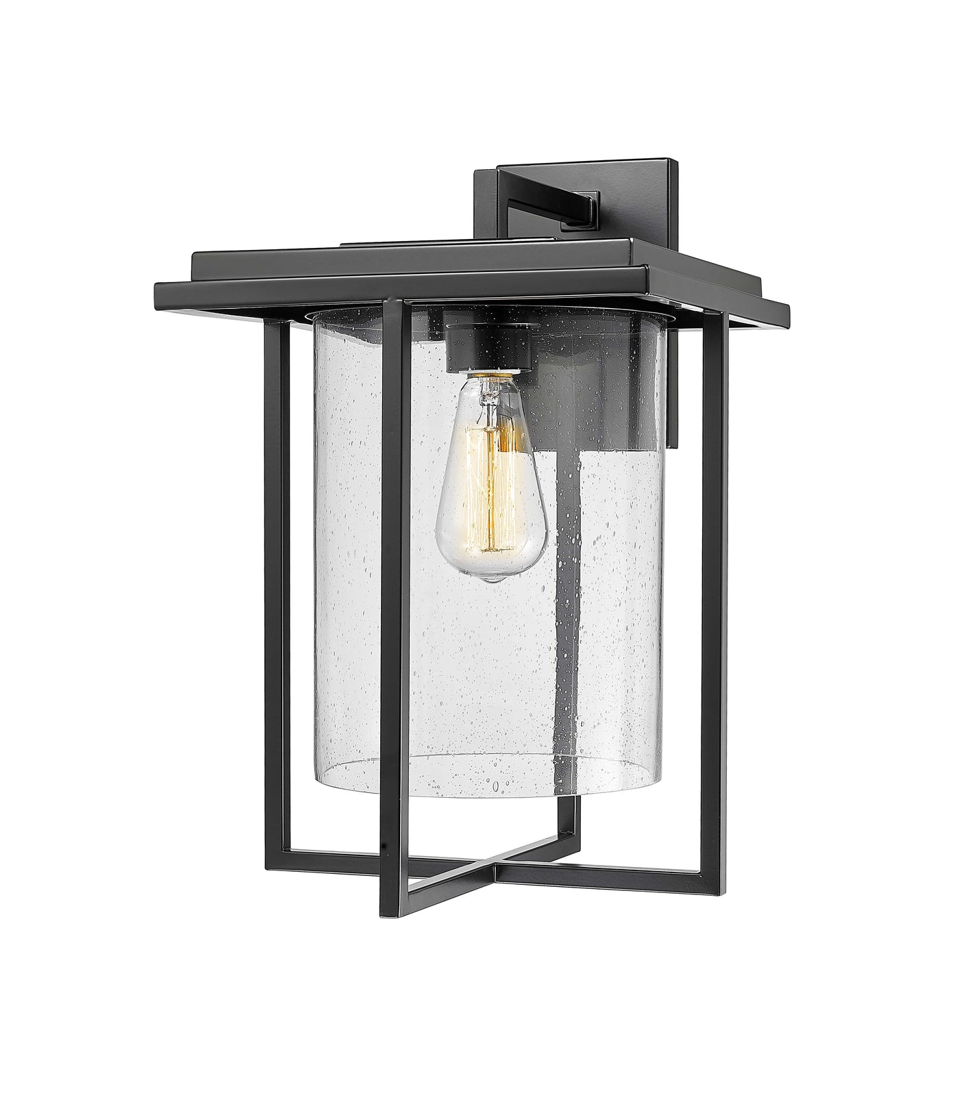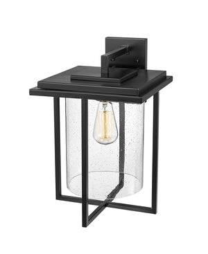 Adair Outdoor Wall Sconce - Powder Coated Black - Clear Seeded Glass - 12.375in. Extension - E26 Medium Base