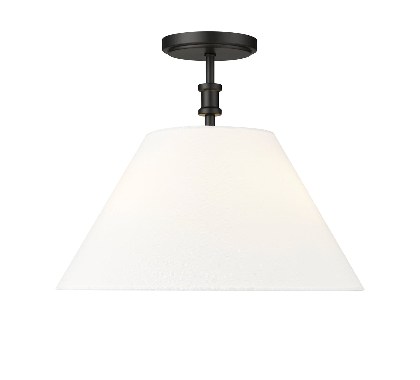 Crisp white linen shades complement the beautifully detailed fixtures in polished nickel, vintage brass, or matte black.