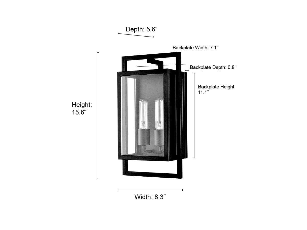 Agatha Outdoor Wall Sconce - Textured Black - Clear Glass - 5.6in. Extension - E26 Medium Base