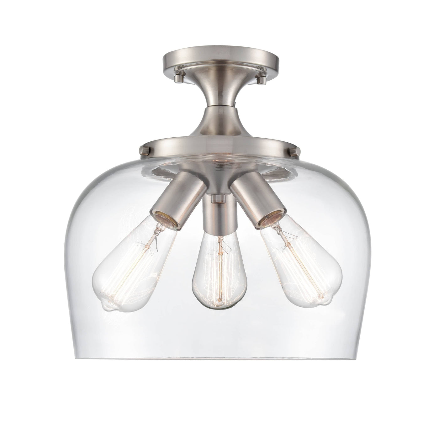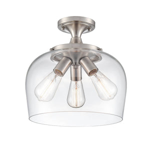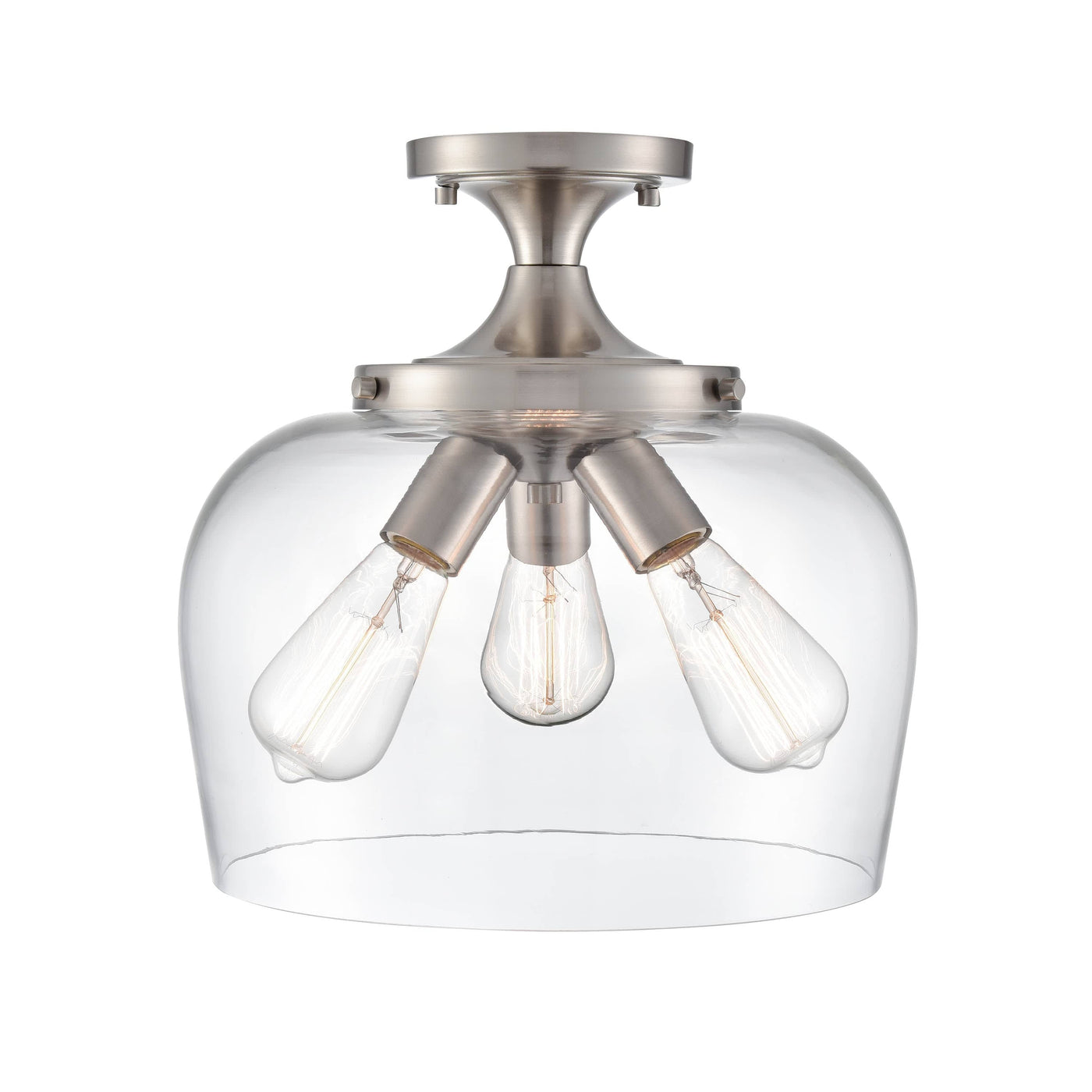 Ashford Semi-Flush Mount Fixture - Brushed Nickel - Clear Glass - 13in. Diameter - E26 Medium Base