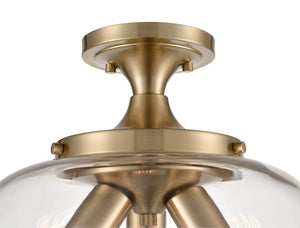 Ashford Semi-Flush Mount Fixture - Modern Gold - Clear Glass - 13in. Diameter - E26 Medium Base