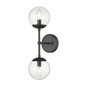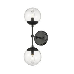 Avell Wall Sconce - Matte Black - Clear Glass - 8in. Extension - E26 Medium Base
