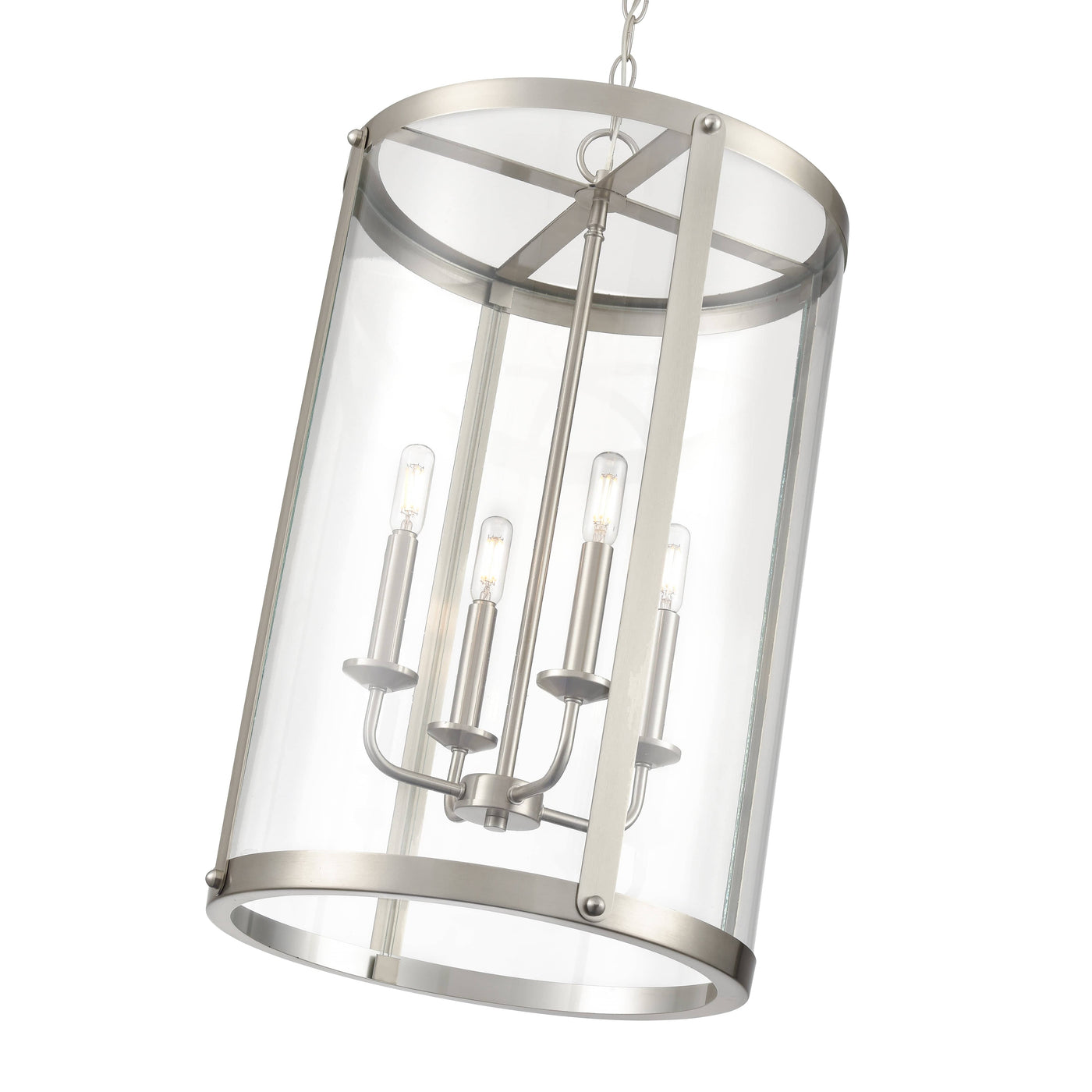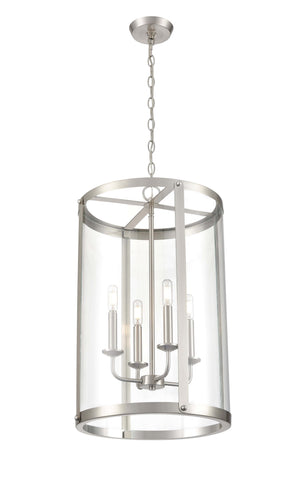 Sparkling clear glass cylinders set into a minimalist steel constructed framework provide abundant light in the Aydenn Collection of pendant lighting.