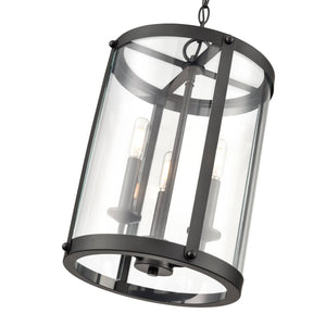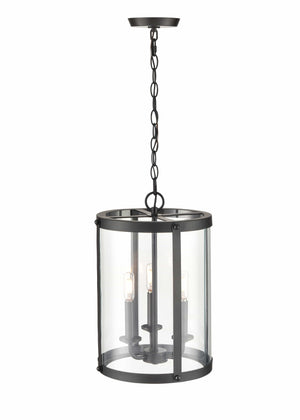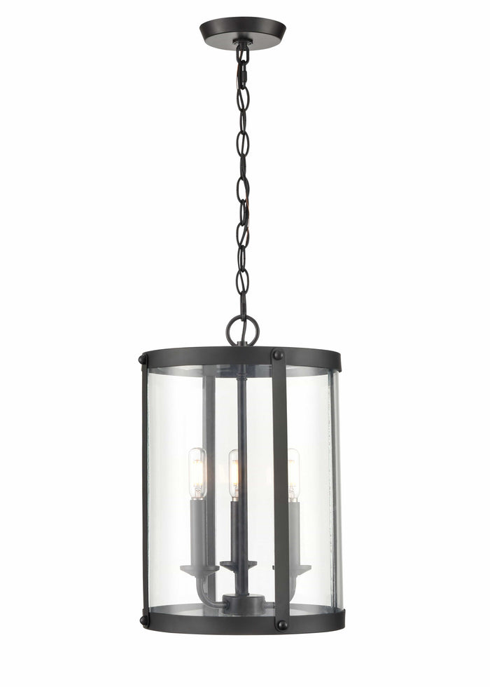 Sparkling clear glass cylinders set into a minimalist steel constructed framework provide abundant light in the Aydenn Collection of pendant lighting.
