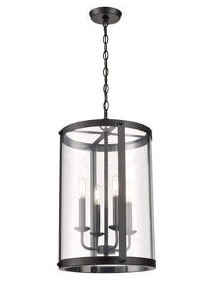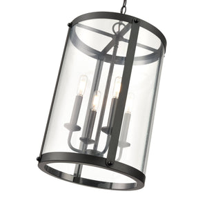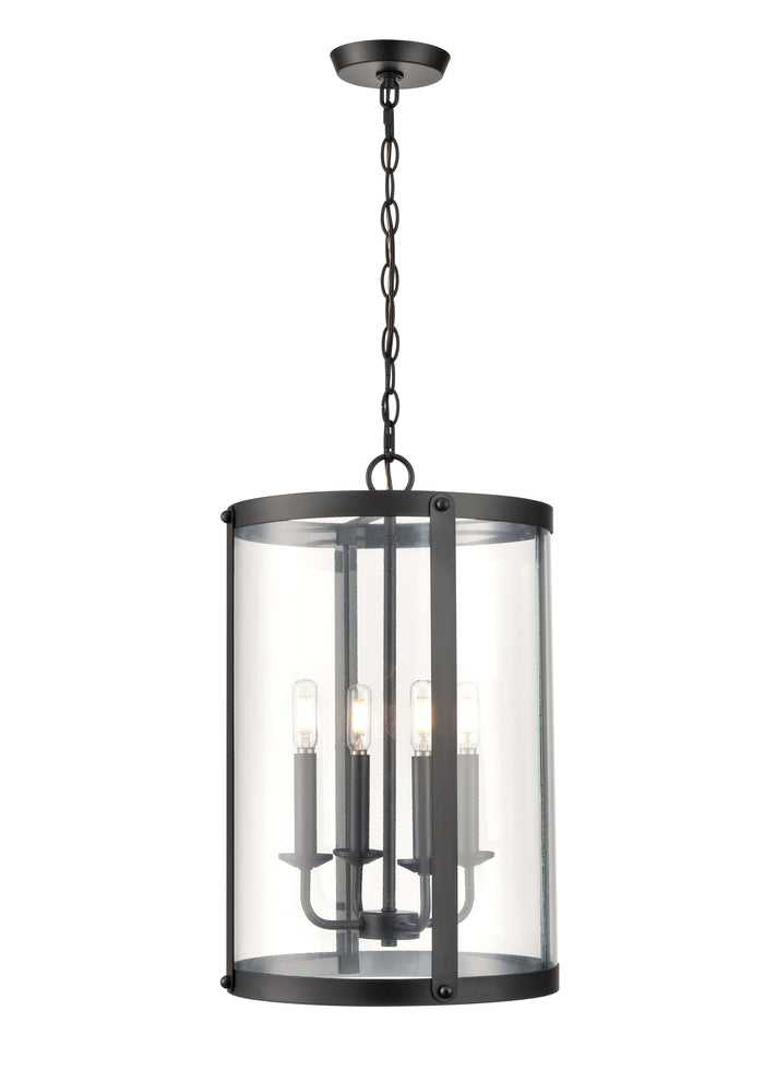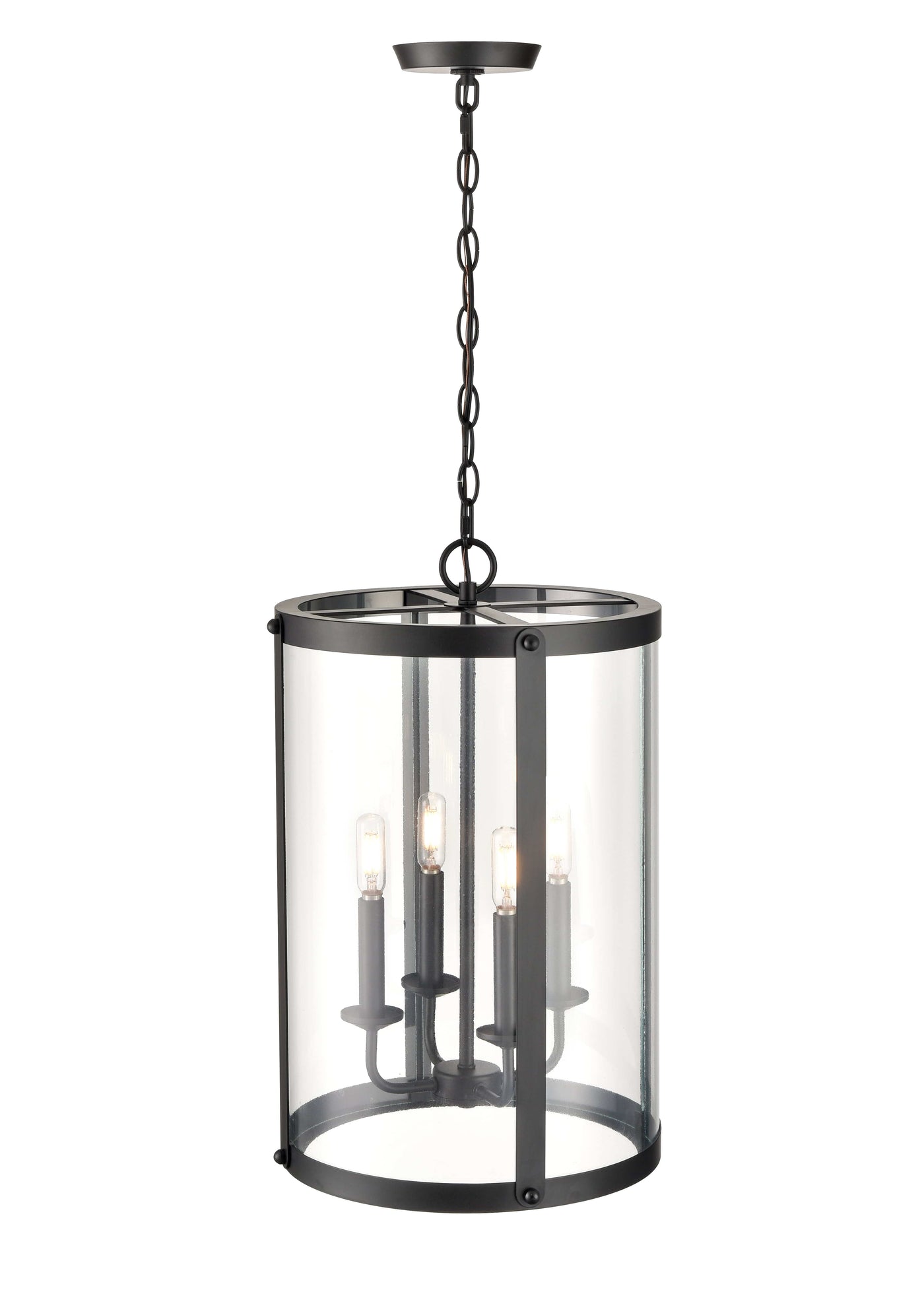 Sparkling clear glass cylinders set into a minimalist steel constructed framework provide abundant light in the Aydenn Collection of pendant lighting.