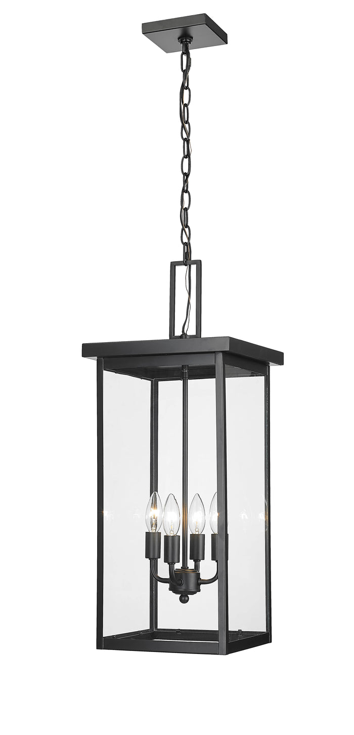 Barkeley Outdoor Hanging Lantern - Powder Coated Black - Clear Glass - 11in. Diameter - E12 Candelabra Base