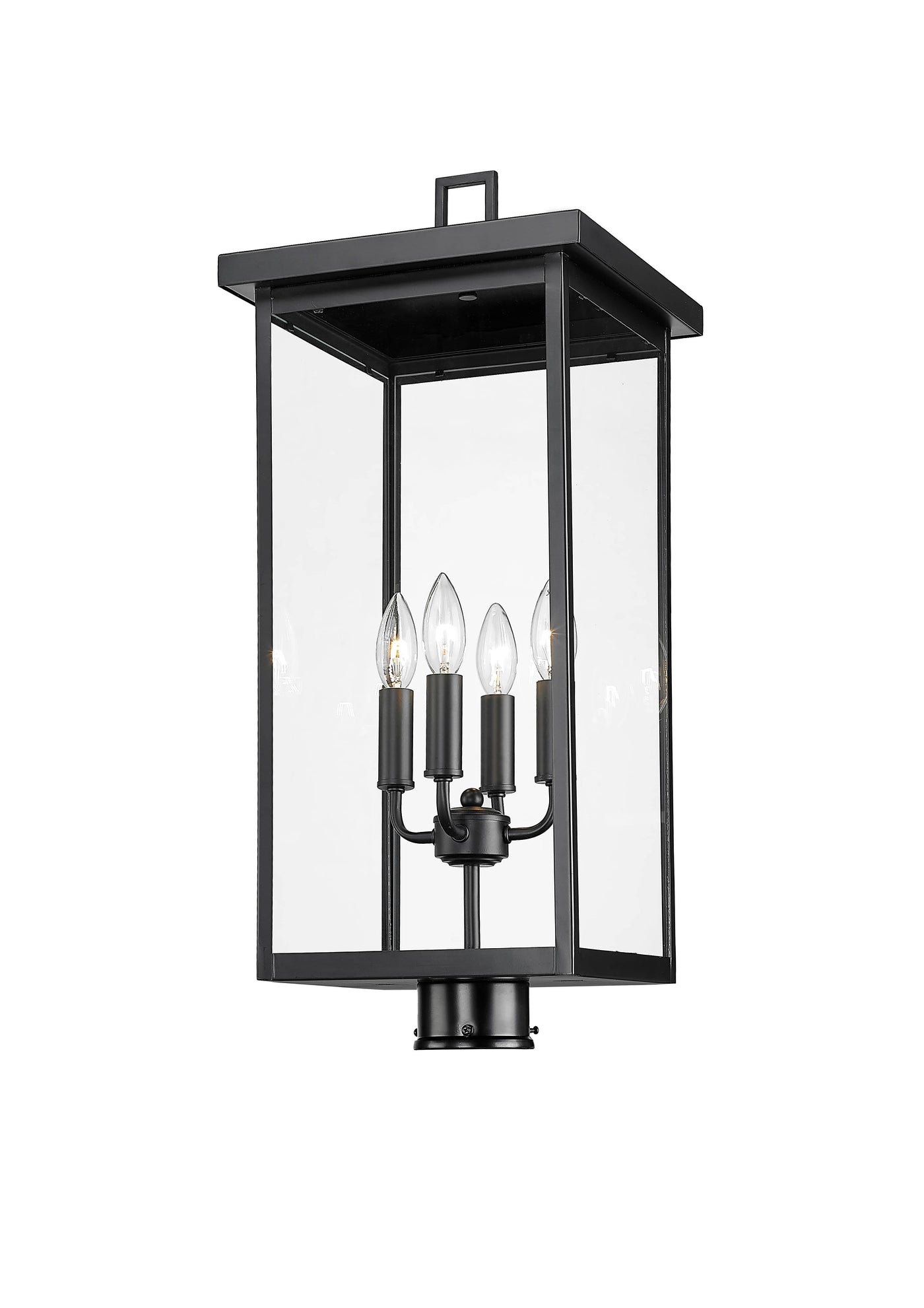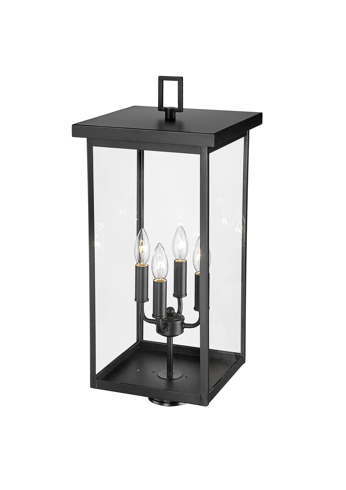 Barkeley Outdoor Post Top Lantern - Powder Coated Black - Clear Glass - 11in. Diameter - E12 Candelabra Base