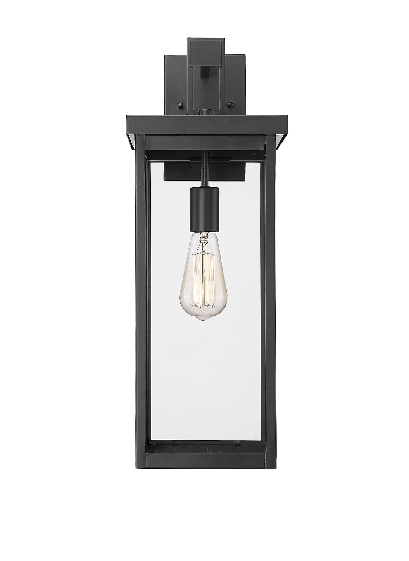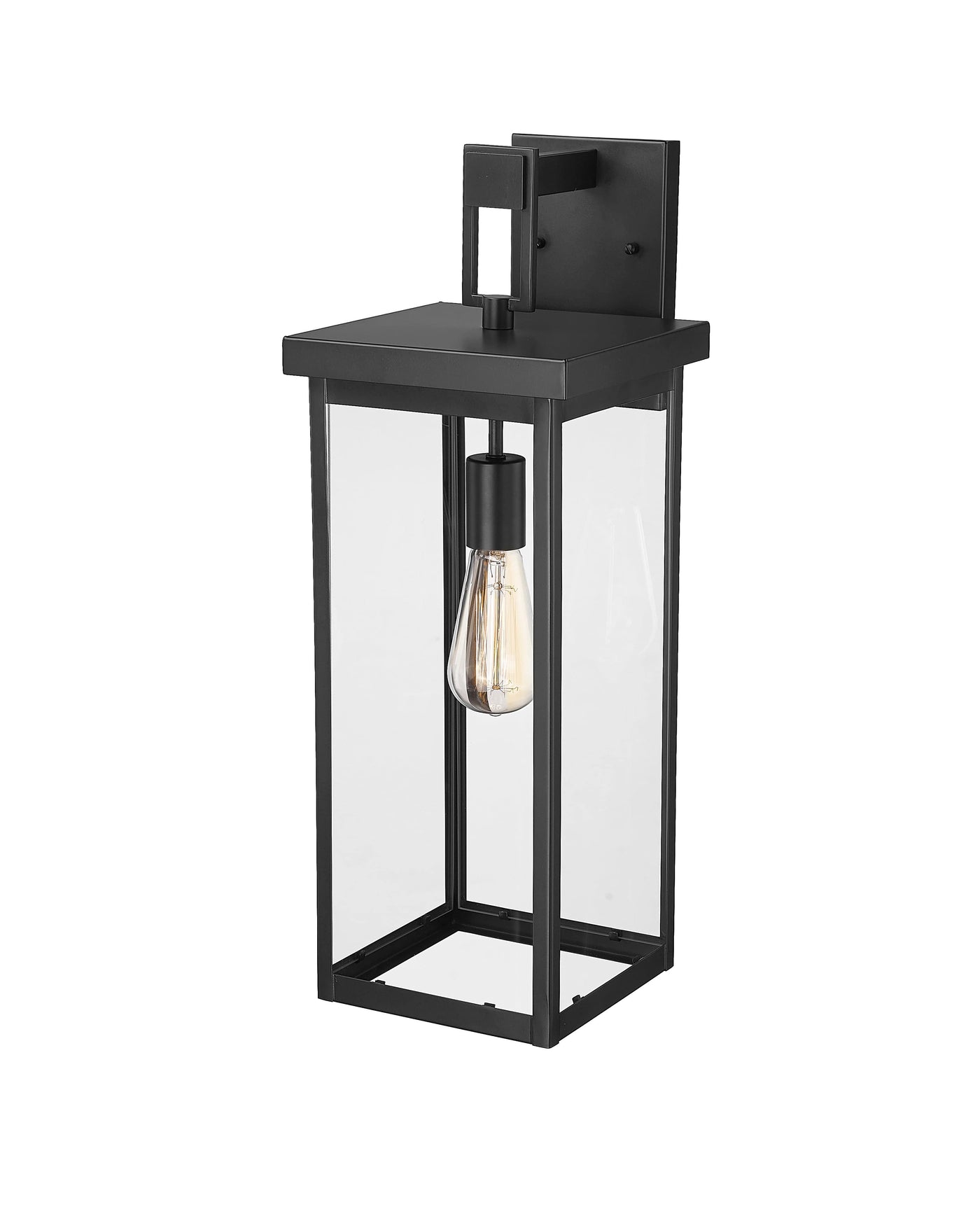 Barkeley Outdoor Wall Sconce - Powder Coated Black - Clear Glass - 9.5in. Extension - E26 Medium Base