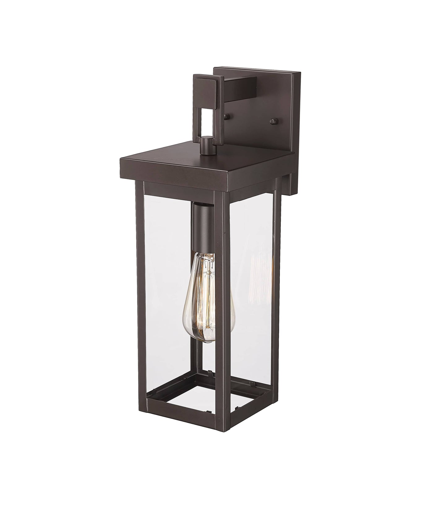 Barkeley Outdoor Wall Sconce - Powder Coated Bronze - Clear Glass - 7.5in. Extension - E26 Medium Base