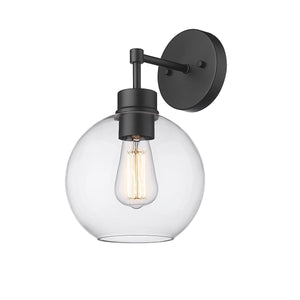 Basin Outdoor Wall Sconce - Powder Coat Black - Clear Glass - 9.13in Extension - E26 Medium Base
