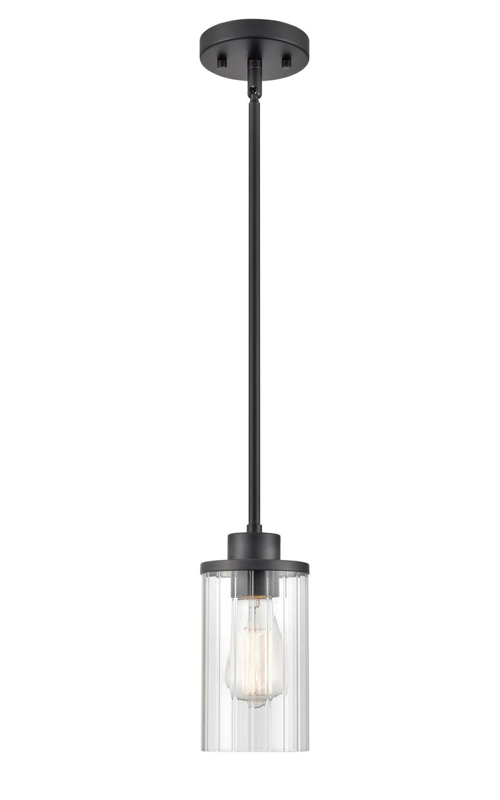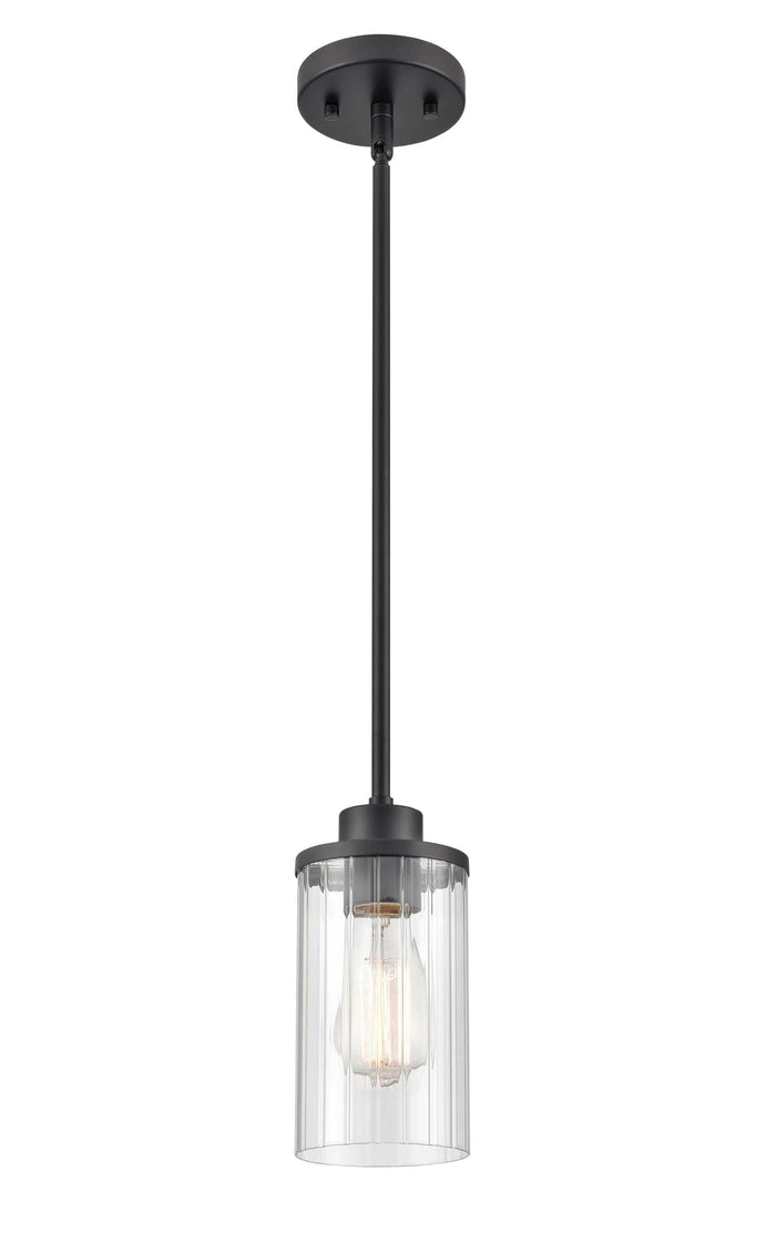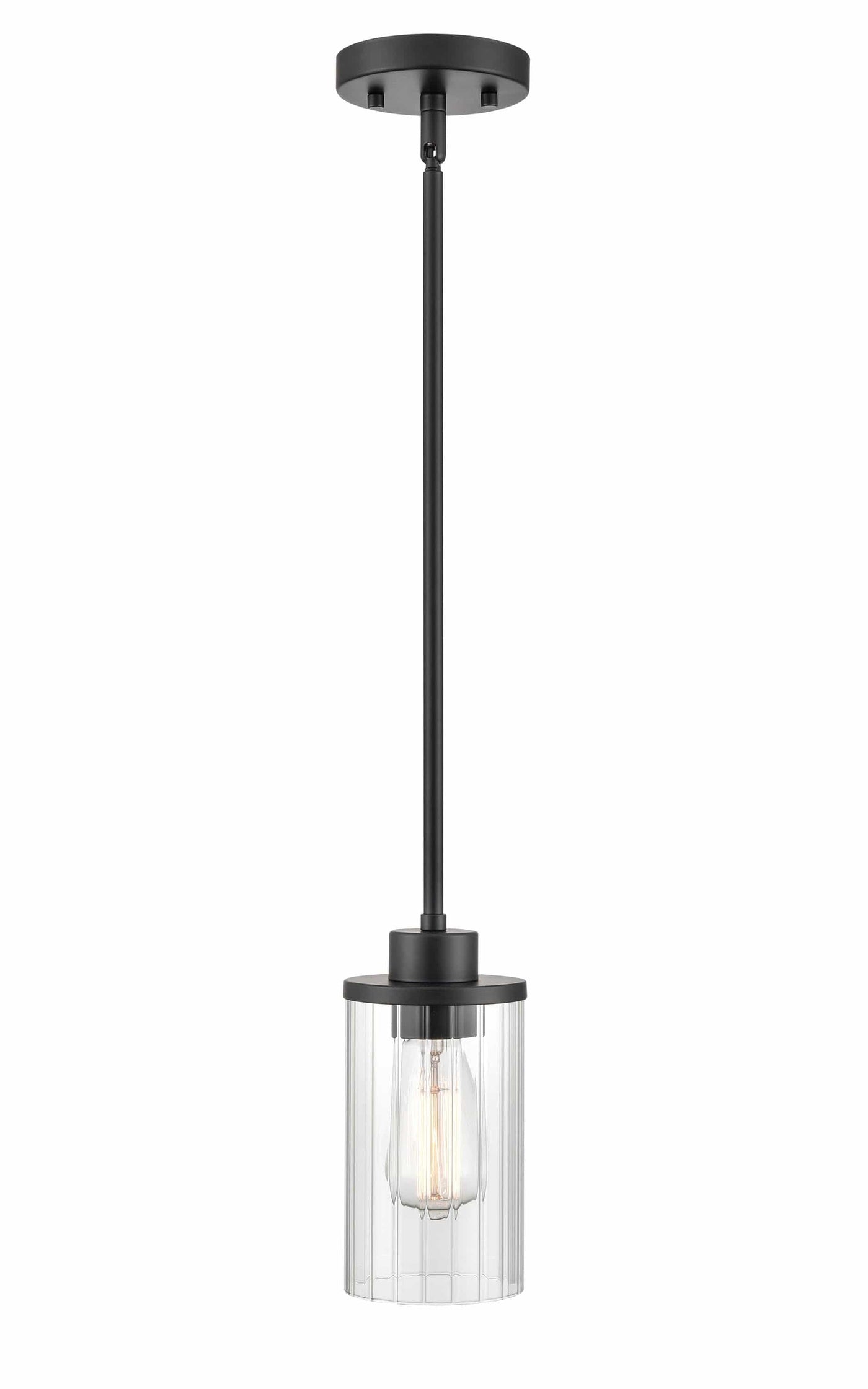 Beverlly Mini-Pendant - Matte Black - Clear Beveled Glass - 4.75in. Diameter - E26 Medium Base