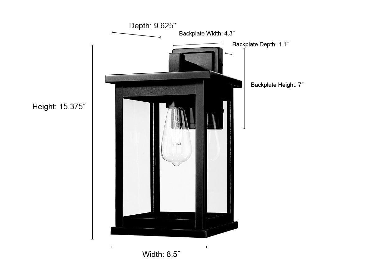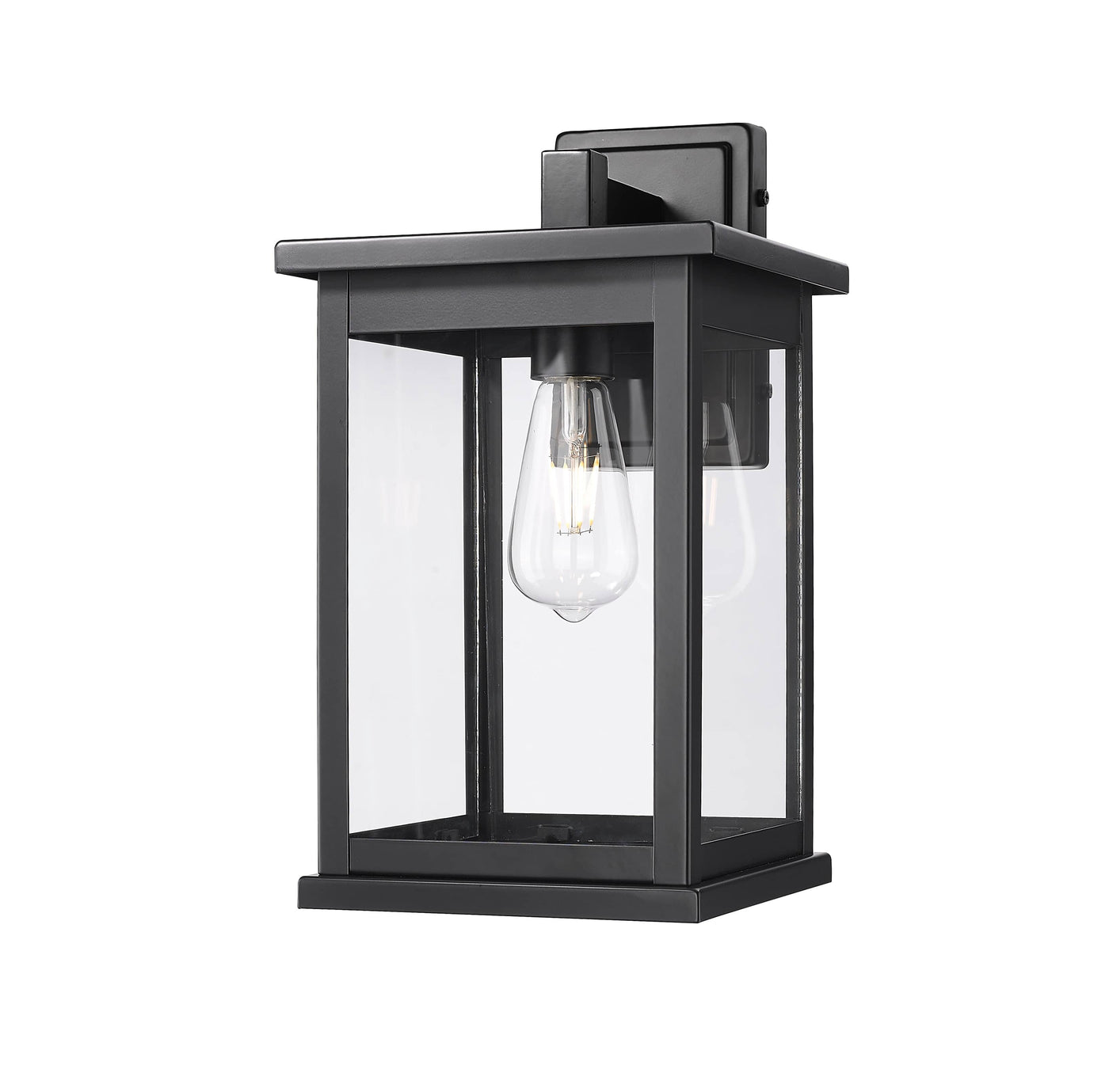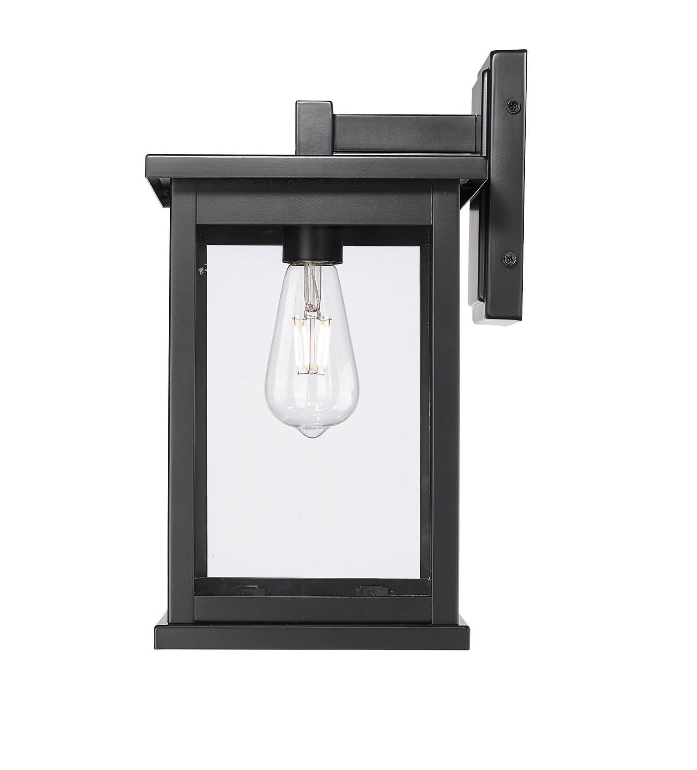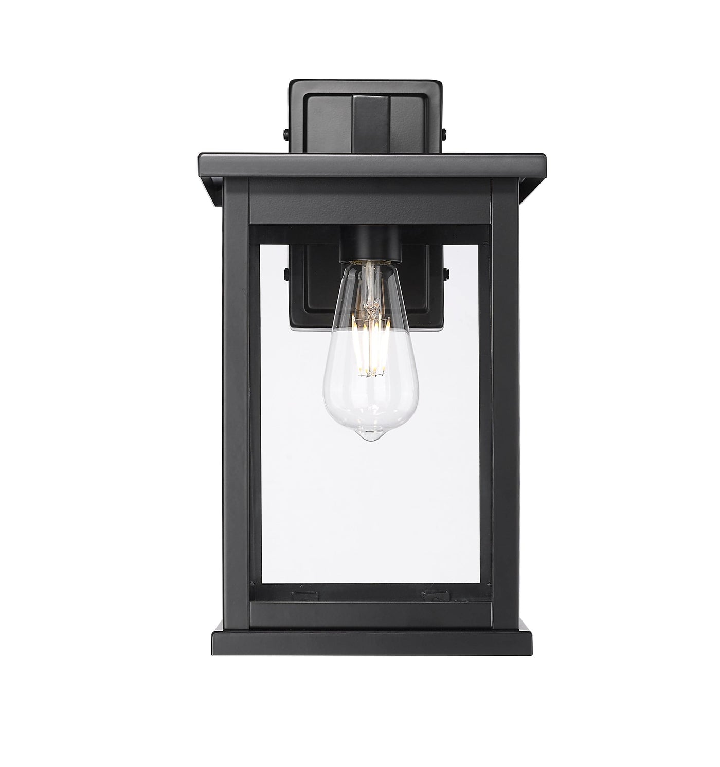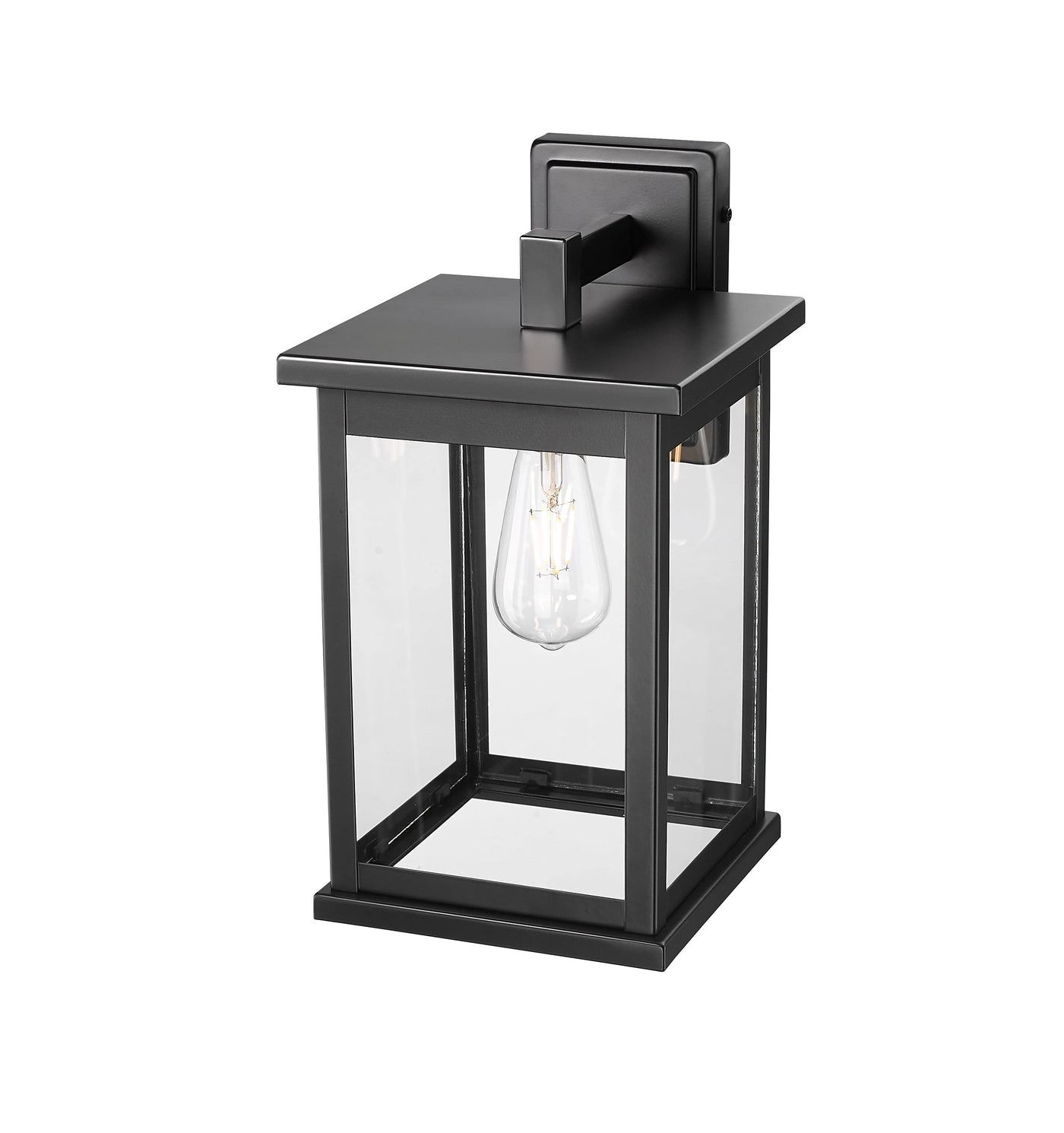 Finished in quintessential powder coat black with clear glass panels, the fixtures are available in a variety of sizes, making them the perfect selection for porches and walkways.
