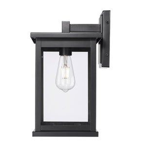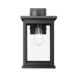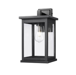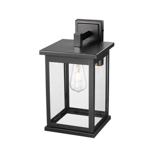Bowton II Outdoor Wall Sconce - Powder Coated Black - Clear Glass - 9.625in. Extension - E26 Medium Base