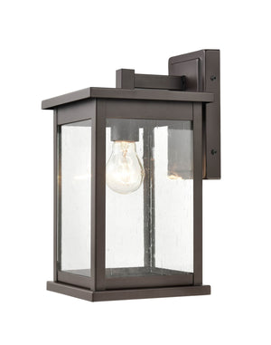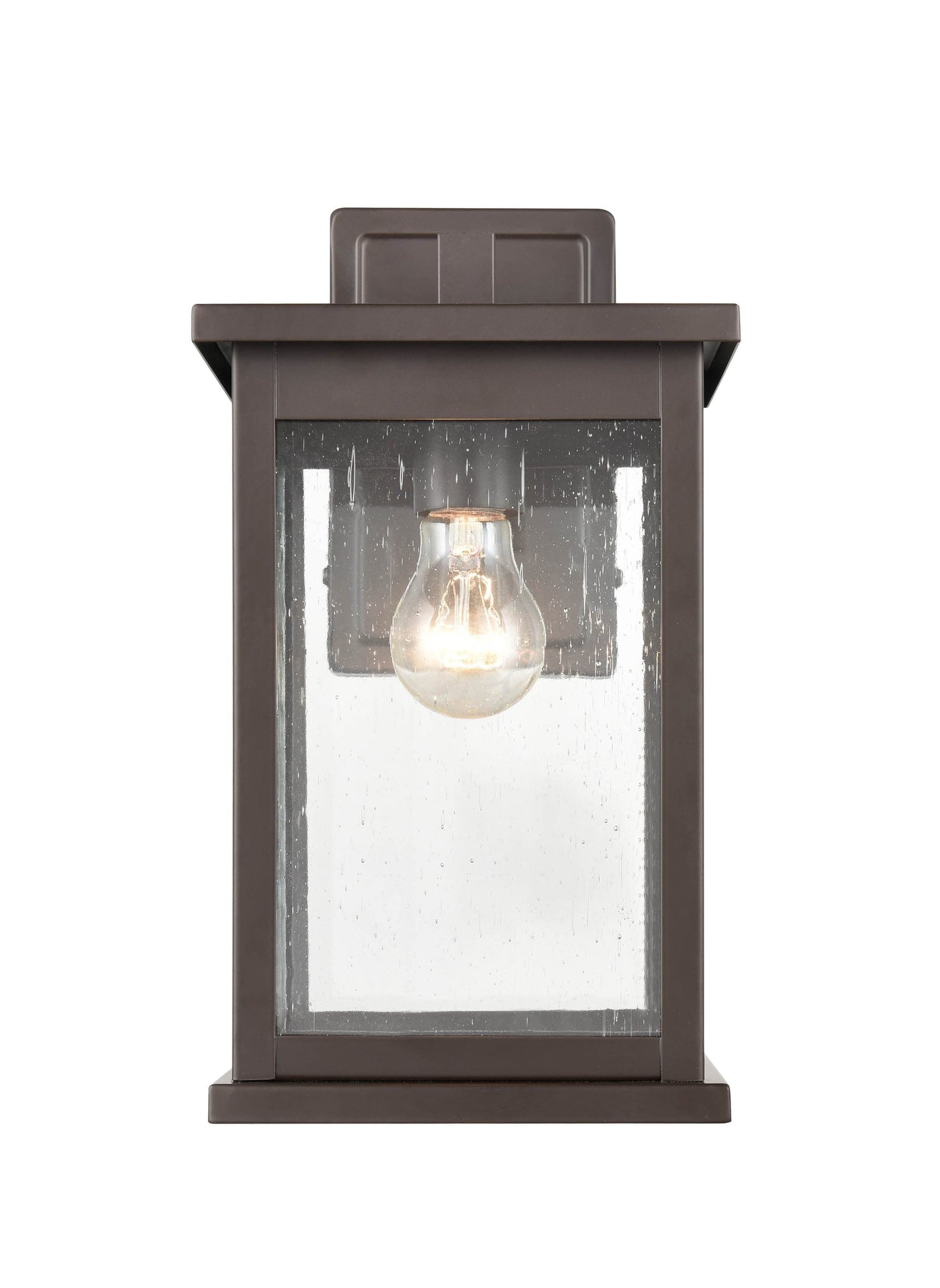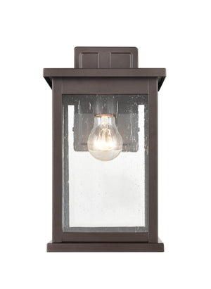 Bowton Outdoor Wall Sconce - Powder Coat Bronze - Clear Seeded Glass - 8.125in. Extension - E26 Medium Base