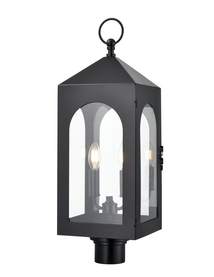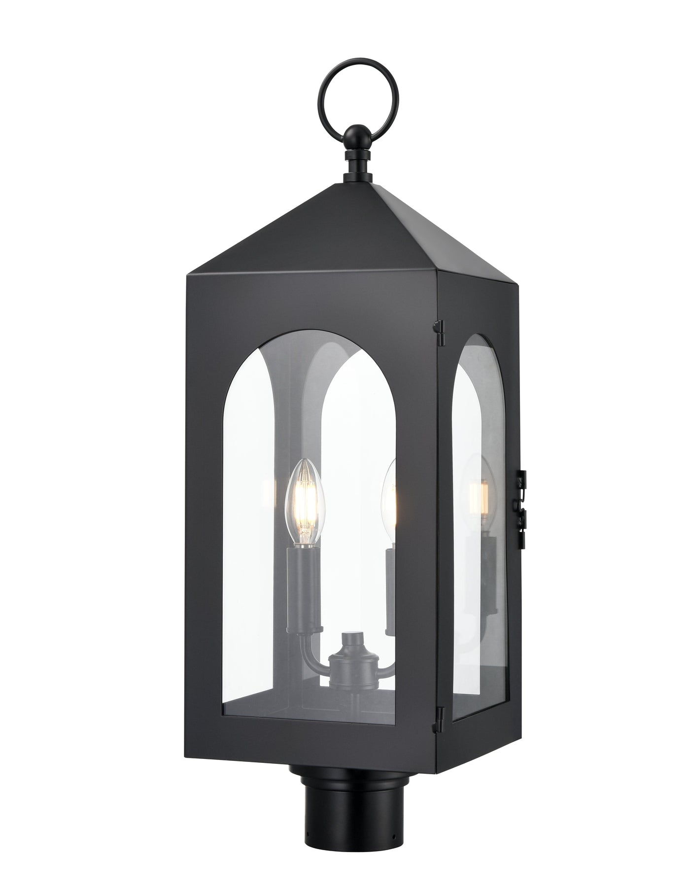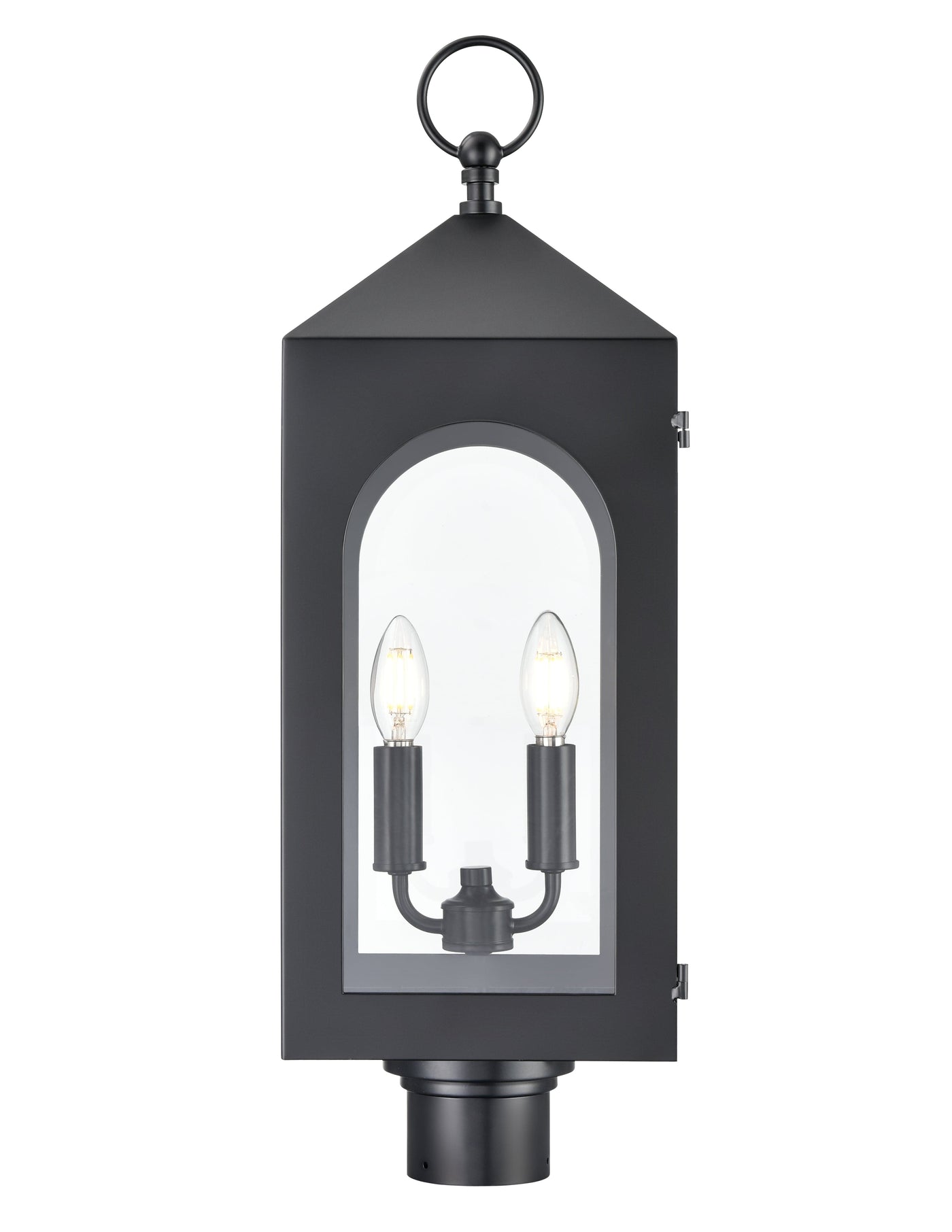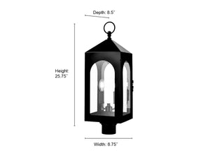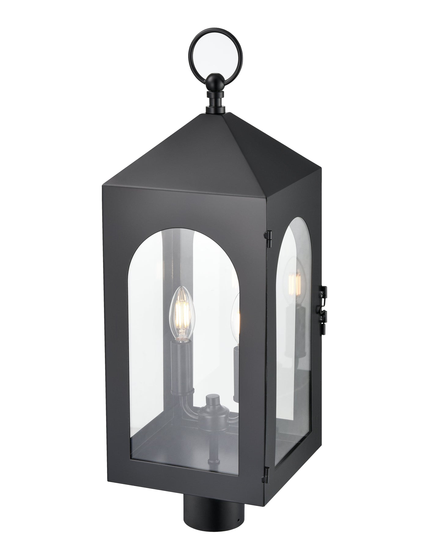 Bratton Outdoor Post Top Lantern - Powder Coated Black - Clear Glass - 8.75in. Diameter - E12 Candelabra Base