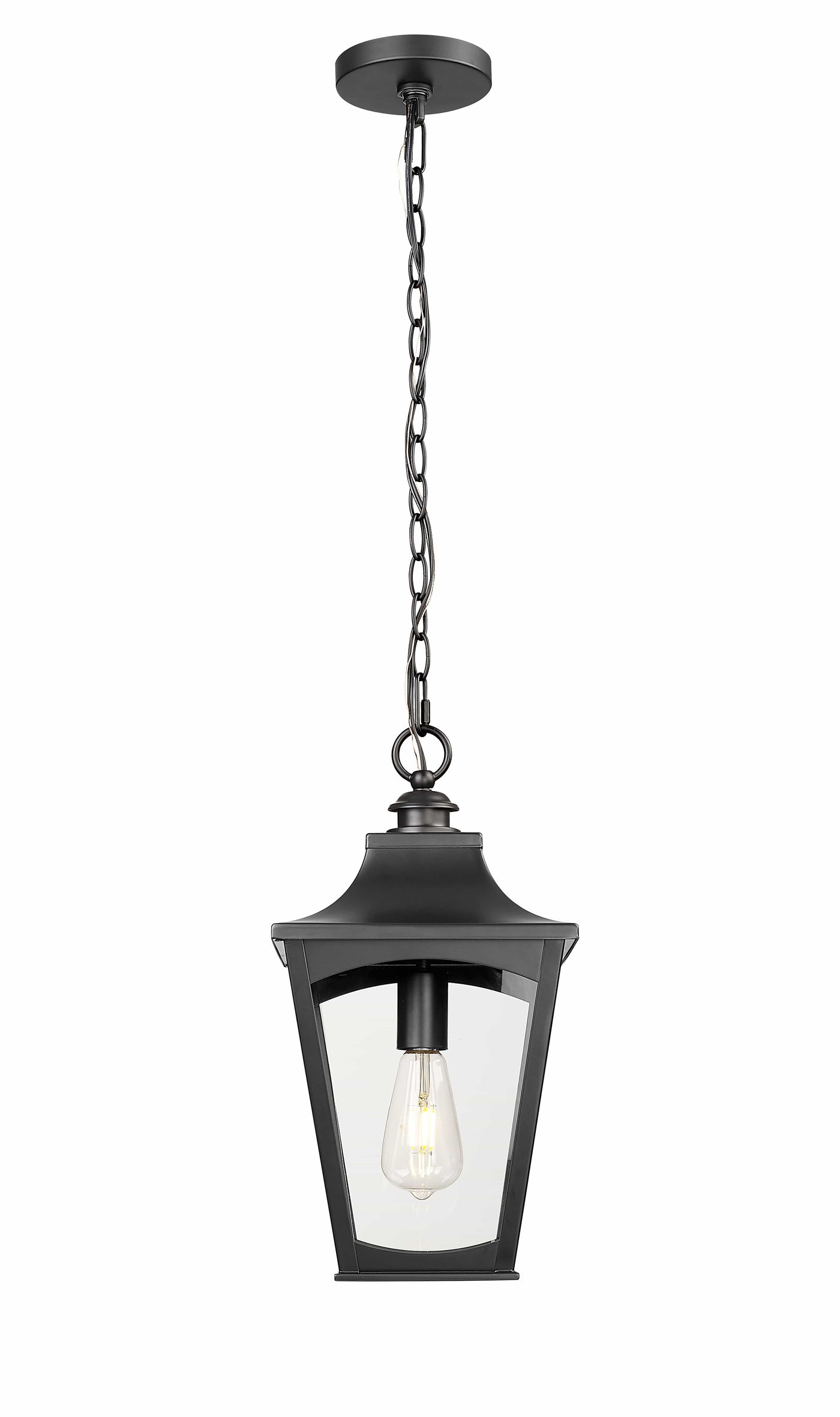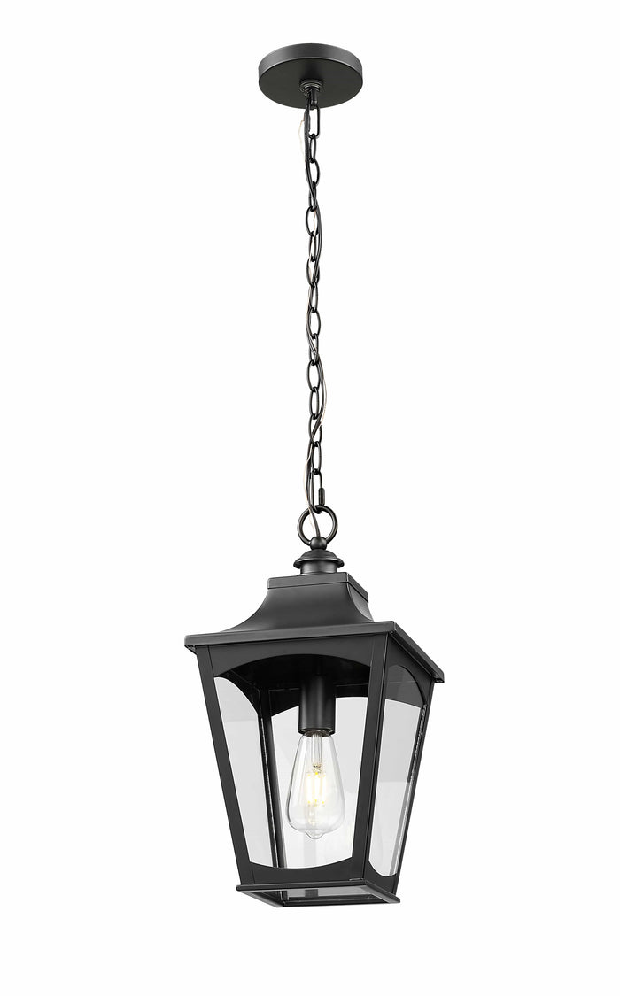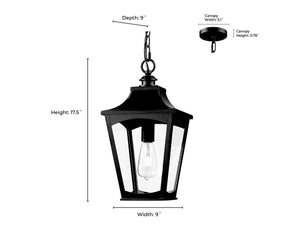 Curry Outdoor Hanging Lantern - Powder Coated Black - Clear Glass - 9in. Diameter - E26 Medium Base