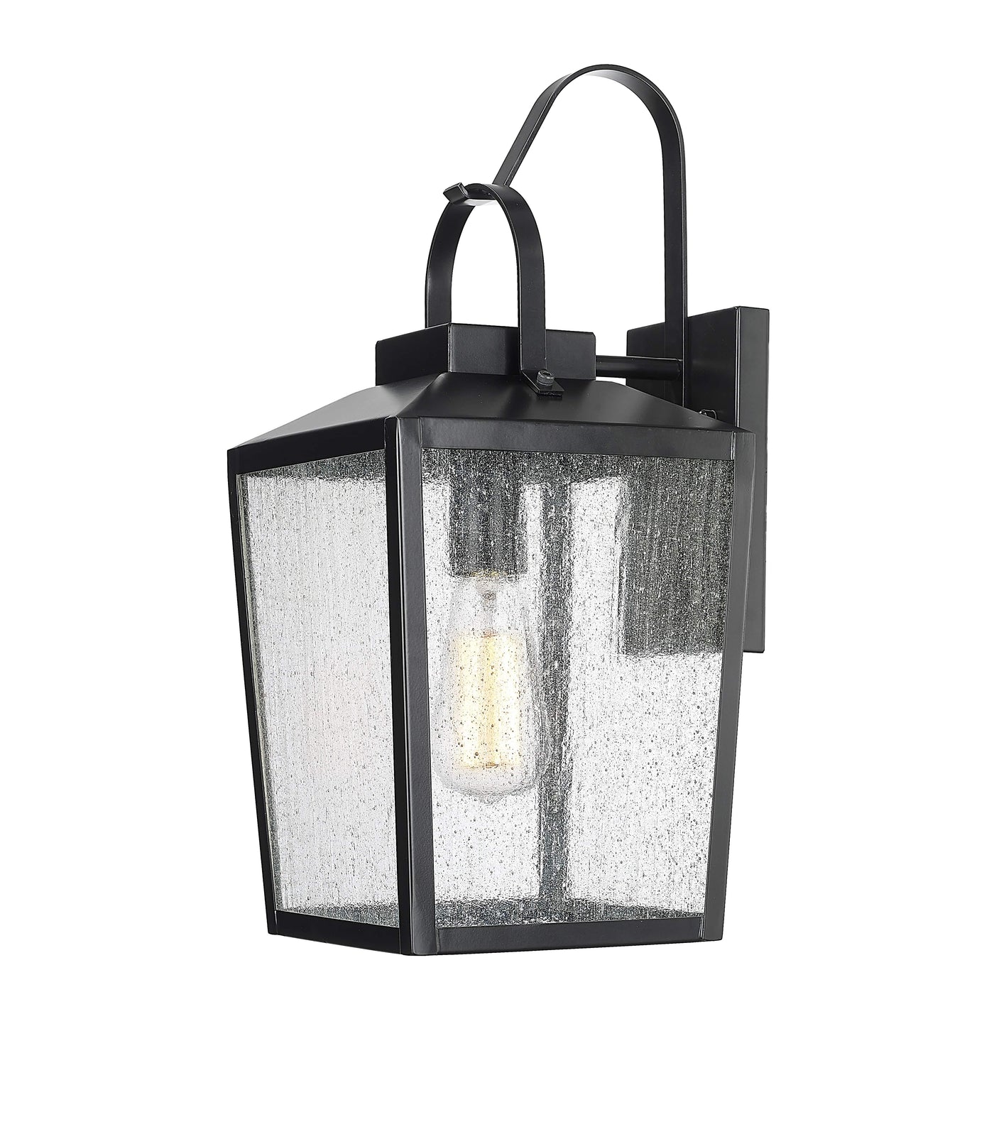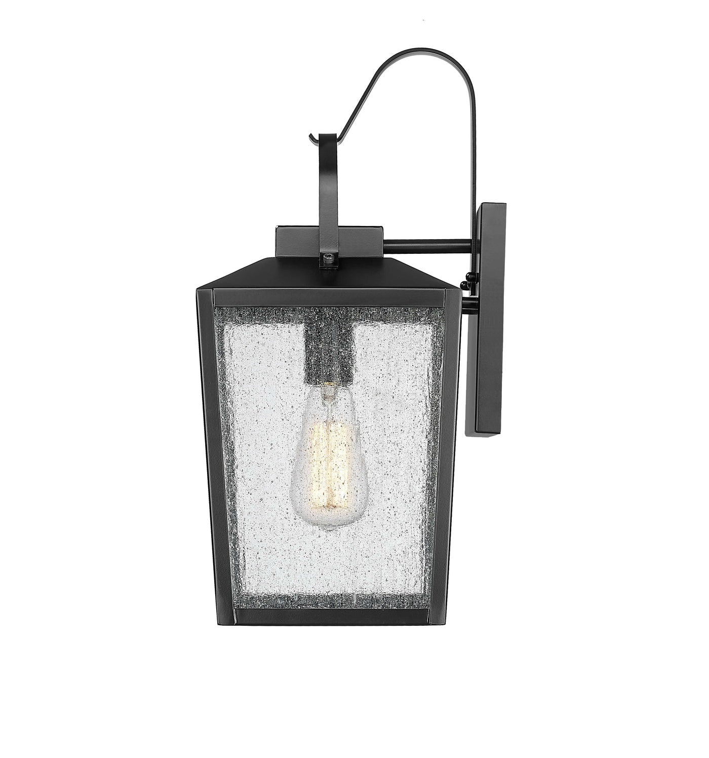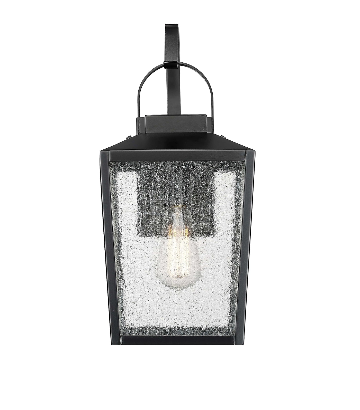 Devens Outdoor Wall Sconce - Powder Coated Black - Clear Seeded Glass - 6.5in. Extension - E26 Medium Base