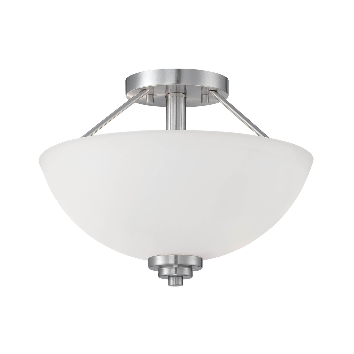 Durham Semi-Flush Mount Fixture - Satin Nickel - Etched White Glass - 13.5in. Diameter - E26 Medium Base