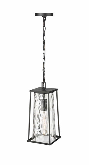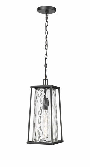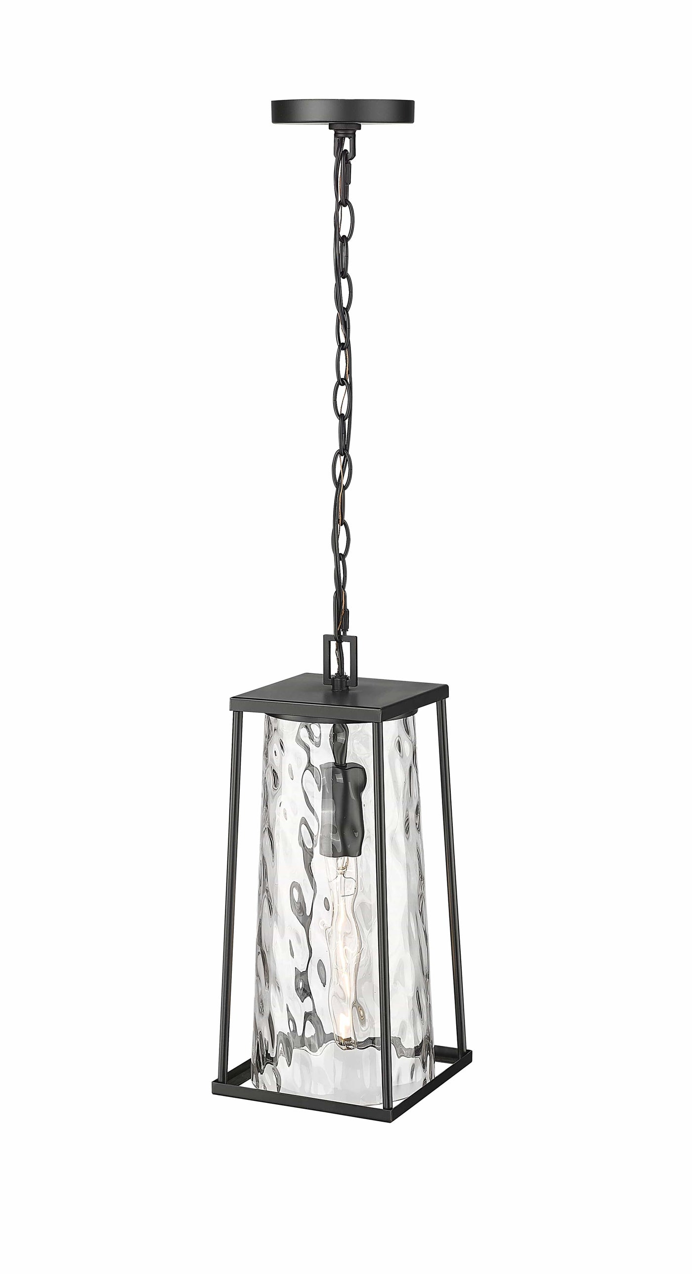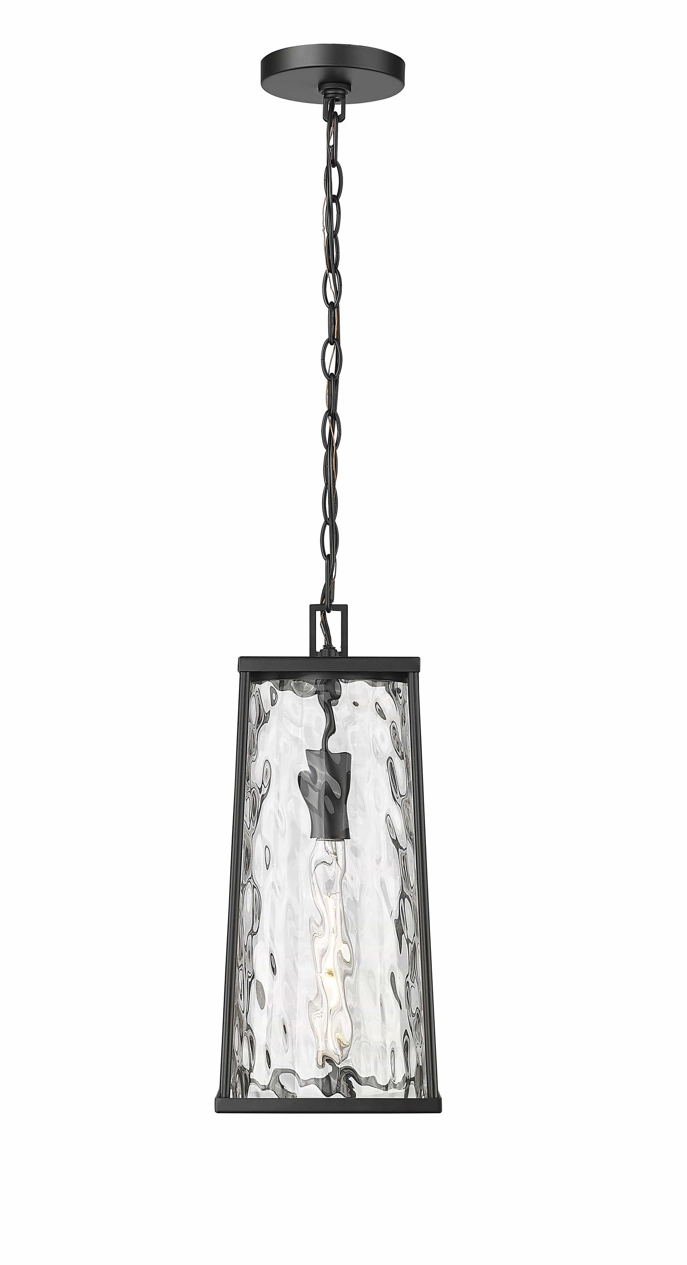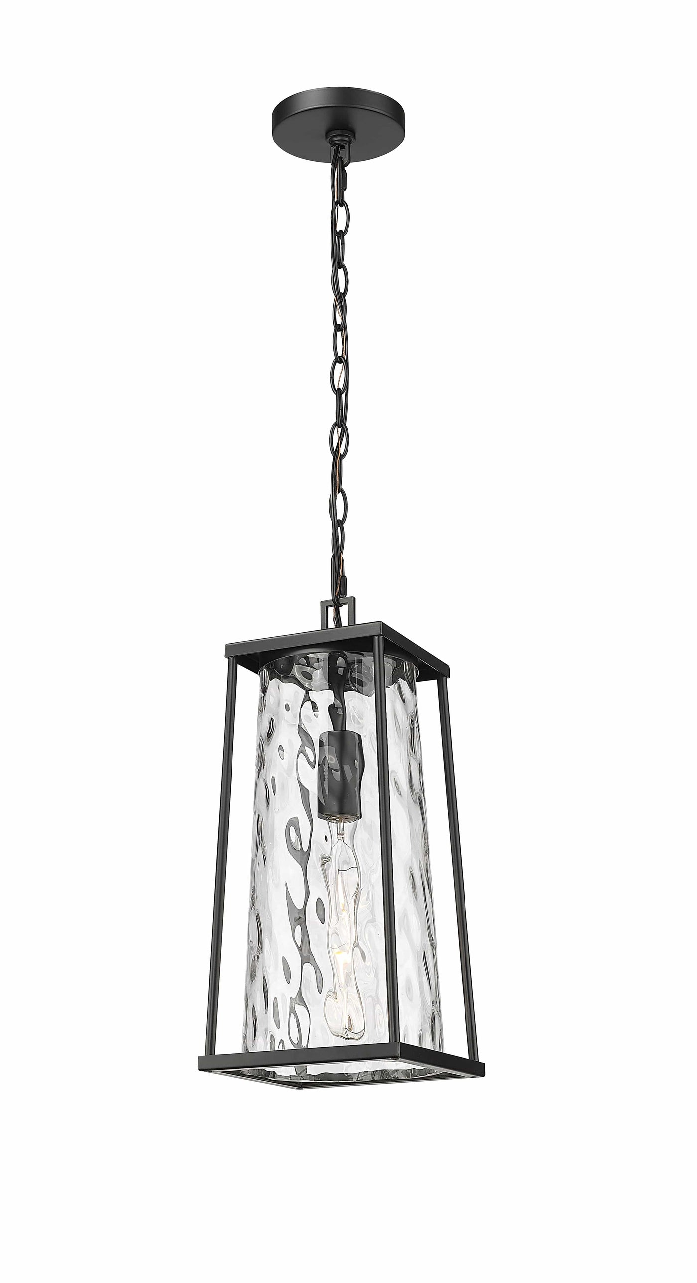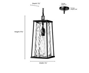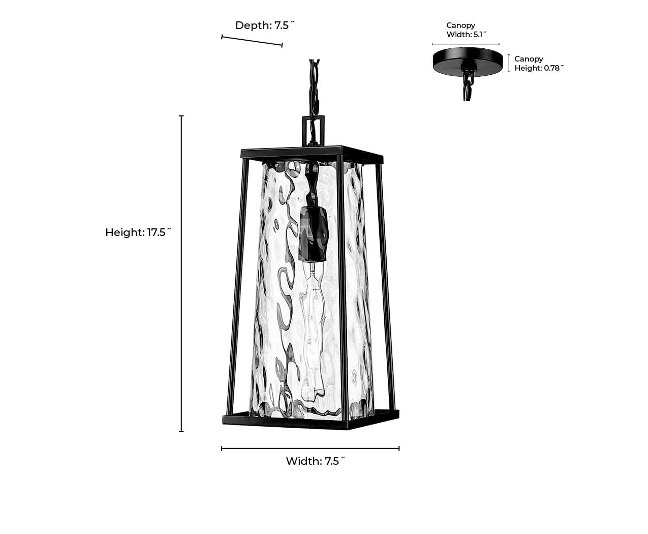 Dutton Outdoor Hanging Lantern - Powder Coated Black - Clear Water Textured Glass - 7.5in. Diameter - E26 Medium Base