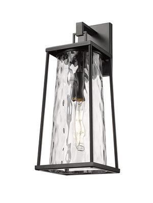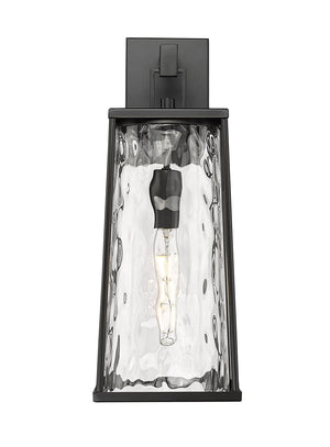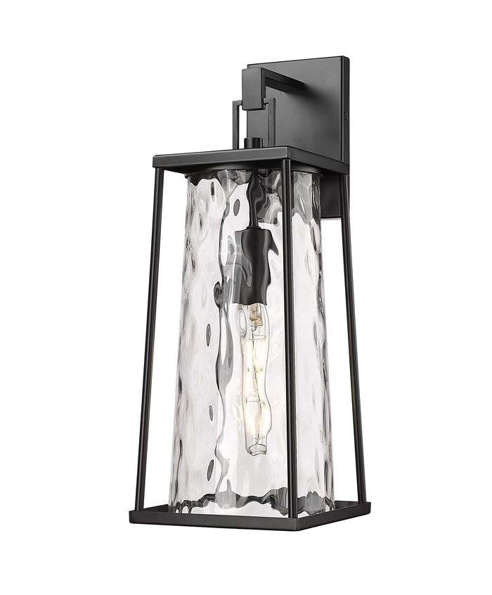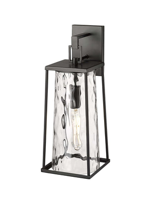 Dutton Outdoor Wall Sconce - Powder Coated Black - Clear Water Textured Glass - 8.5in. Extension - E26 Medium Base