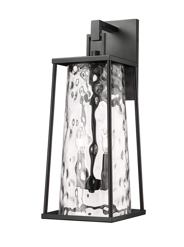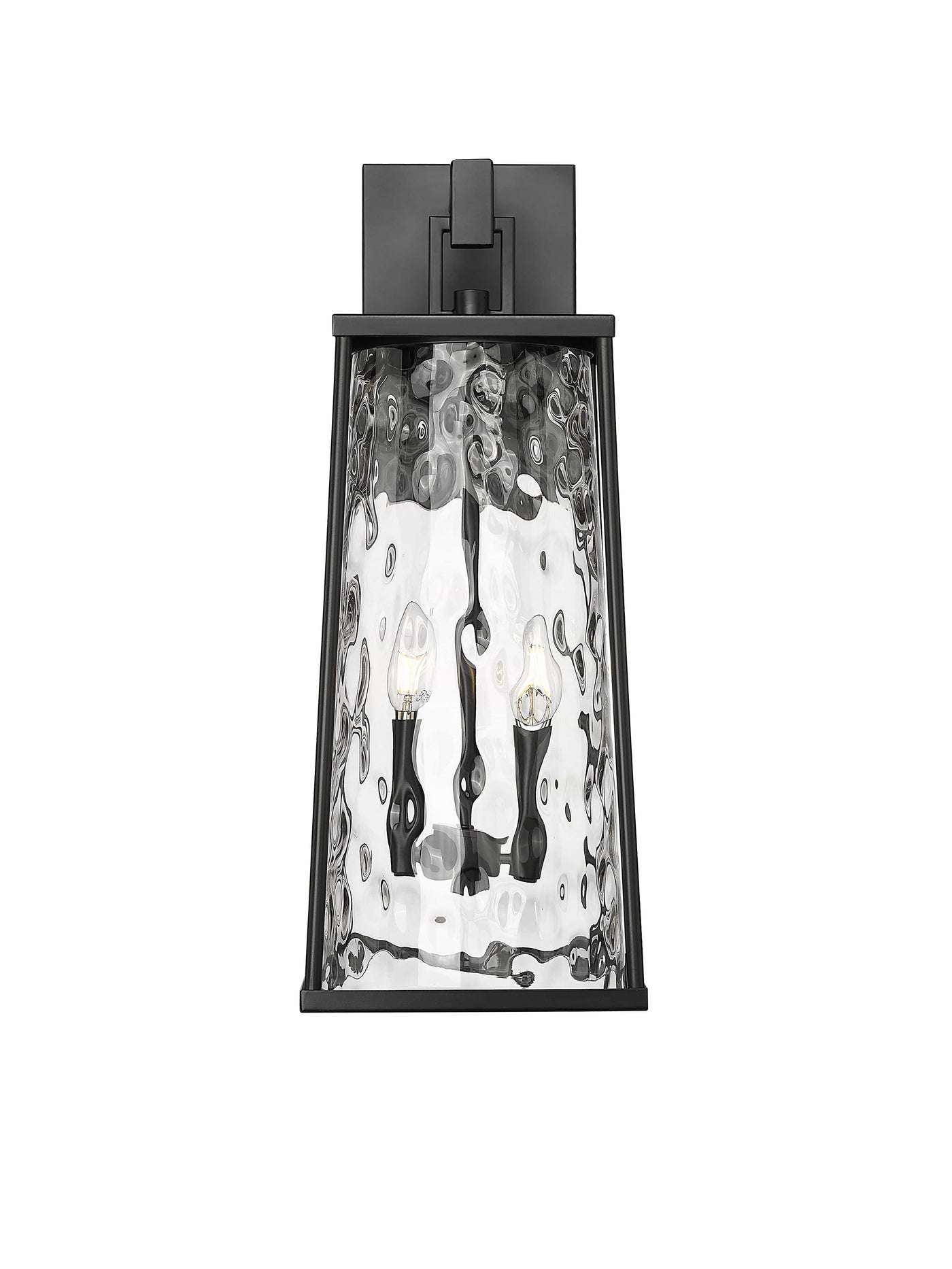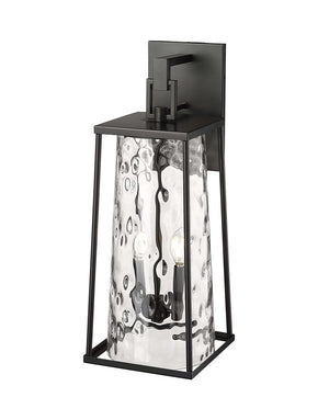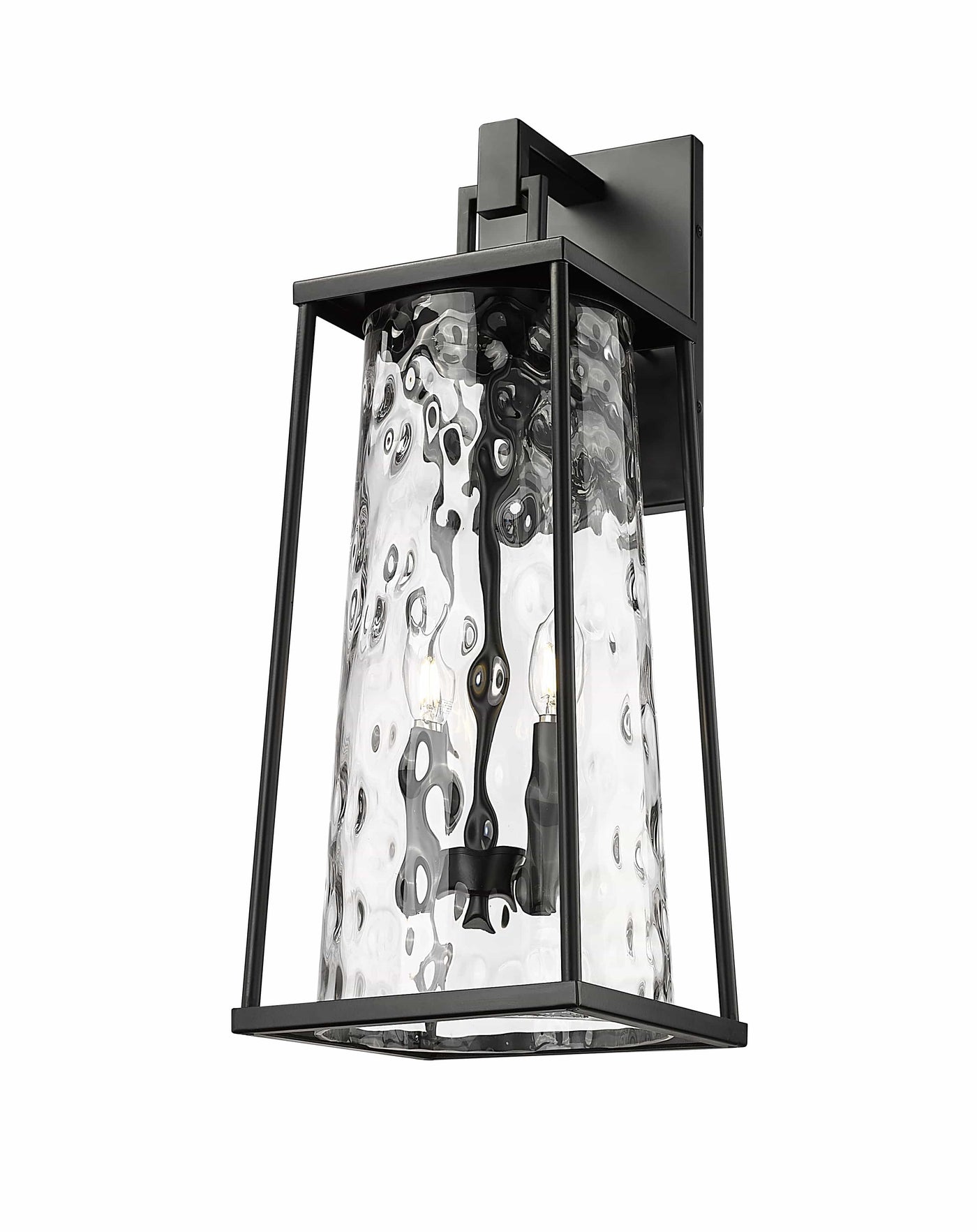 Dutton Outdoor Wall Sconce - Powder Coated Black - Clear Water Textured Glass - 9.75in. Extension - E26 Candelabra Base