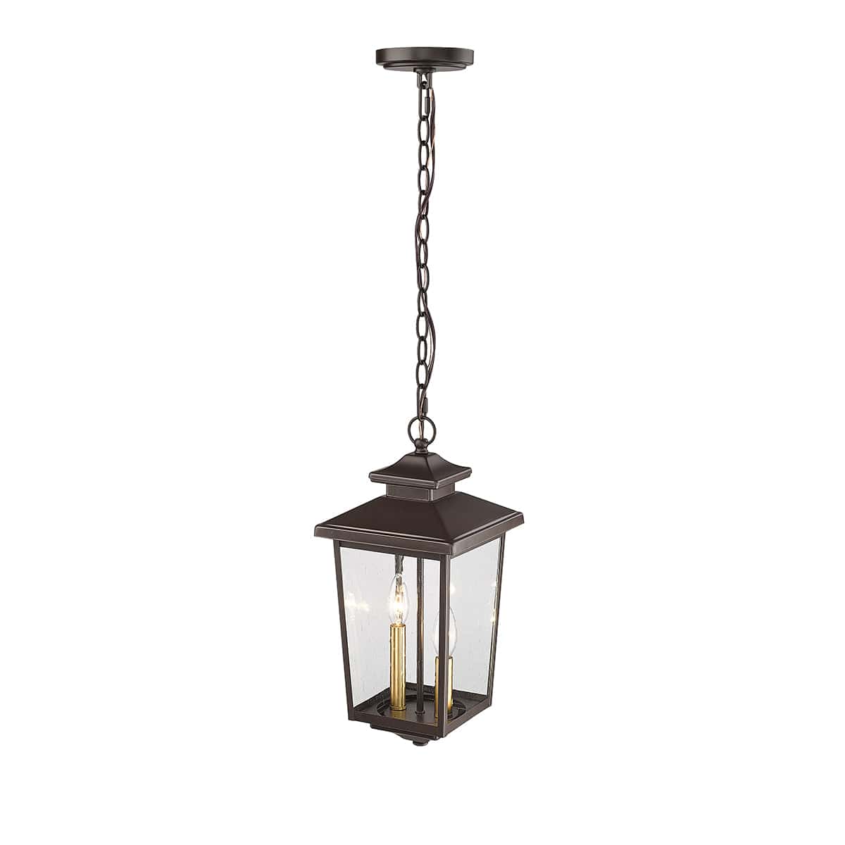 Eldrick Outdoor Hanging Lantern - Powder Coat Bronze - Clear Seeded Glass - 11.1in. Diameter - E12 Candelabra Base