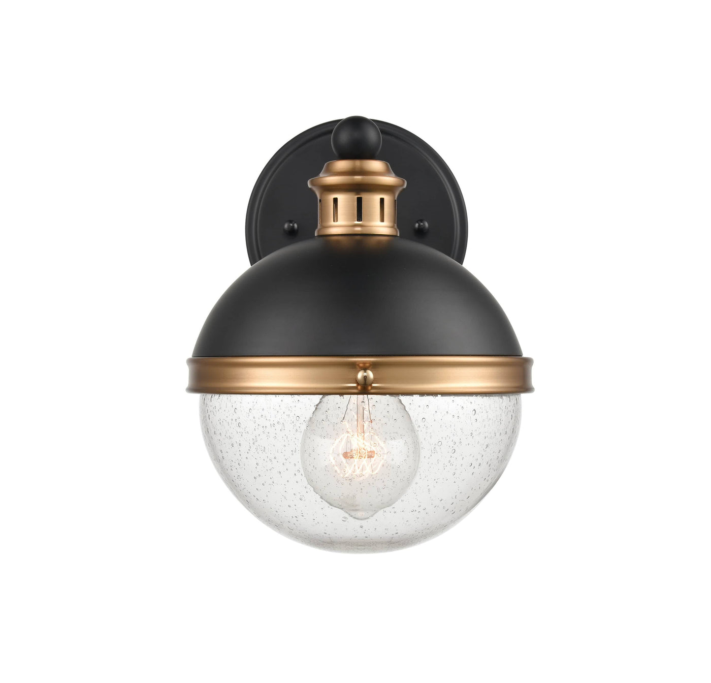 Ellmira Wall Sconce - Matte Black / Aged Brass - Clear Seeded Glass - 8.875in. Extension - E26 Medium Base
