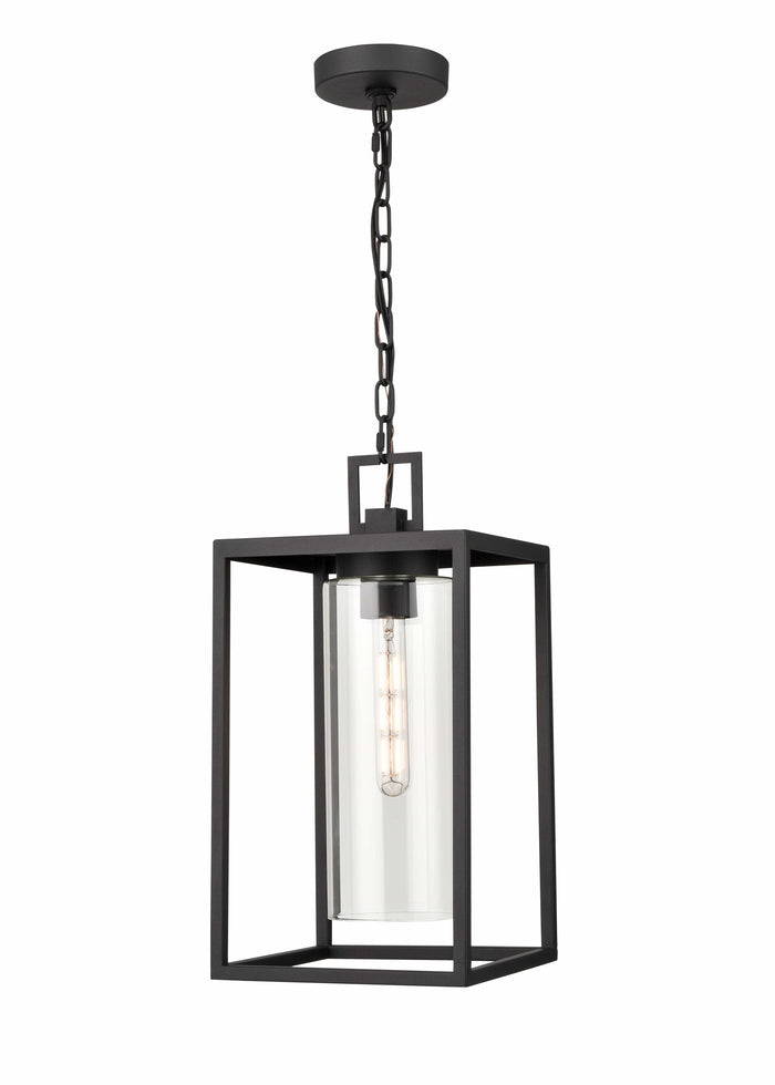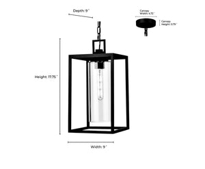 Ellway Outdoor Hanging Lantern - Textured Black - Clear Glass - 9in. Diameter - E26 Medium Base
