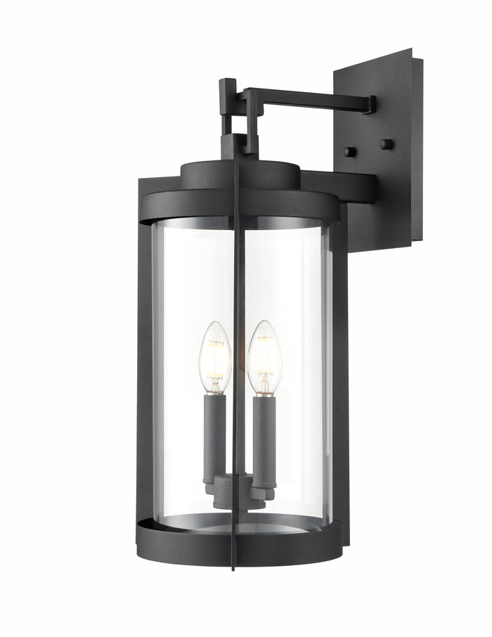 Ellway Outdoor Wall Sconce - Textured Black - Clear Glass - 11in. Extension - E26 Candelabra Base