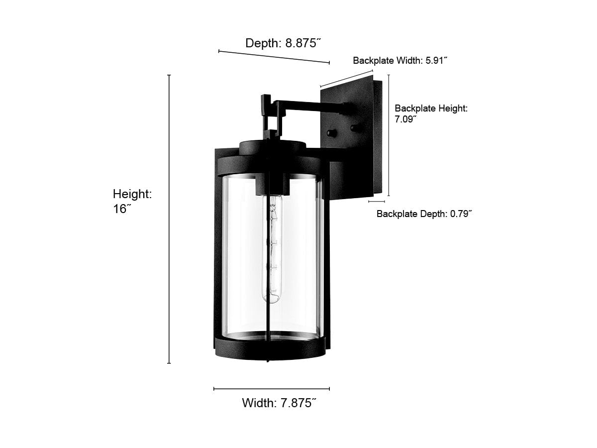 Ellway Outdoor Wall Sconce - Textured Black - Clear Glass - 8.875in. Extension - E26 Medium Base