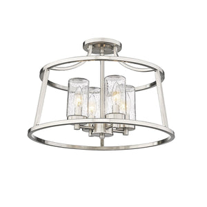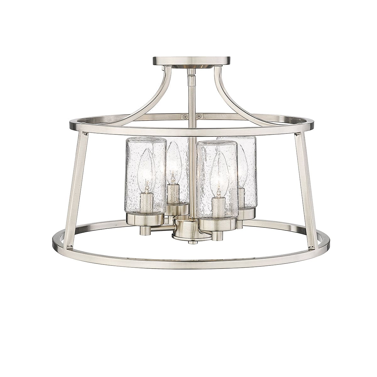 Errol Semi-Flush Mount Fixture - Brushed Nickel - Clear Glass - 17.99in. Diameter - E12 Candelabra Base