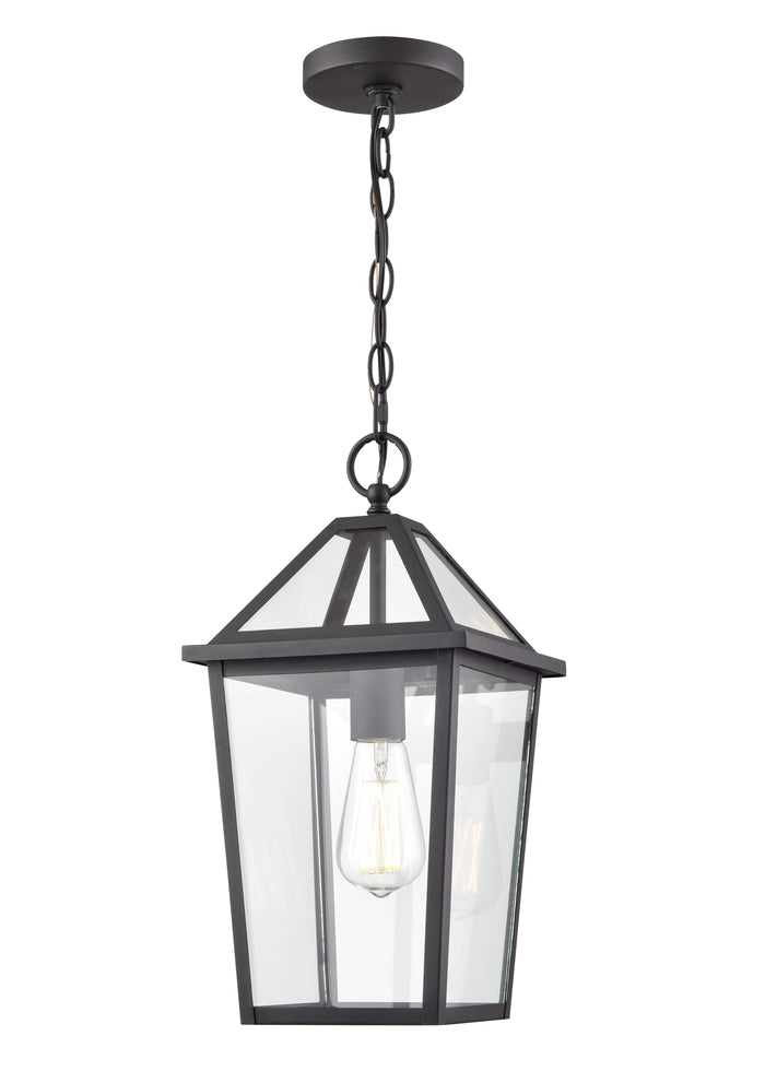 Eston Outdoor Hanging Lantern - Textured Black - Clear Glass - 8.25in. Diameter - E26 Medium Base