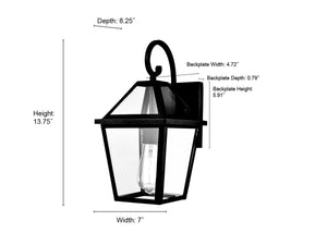 Eston Outdoor Wall Sconce - Textured Black - Clear Glass - 8.25in. Extension - E26 Medium Base