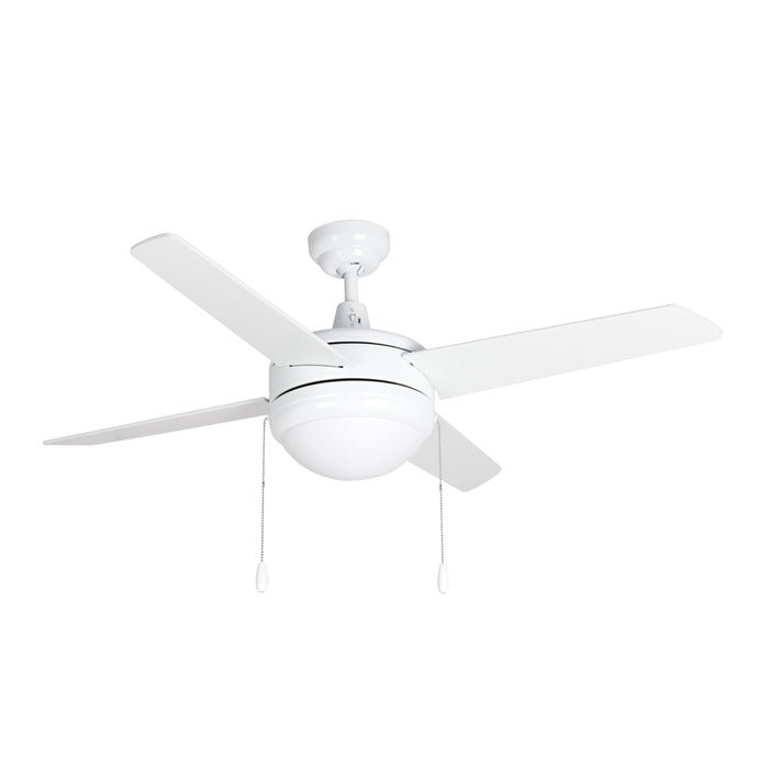 Europa II 4-Blade Indoor Ceiling Fan - White Finish - White Blade - 44in. Sweep - 2-Bulb E26 Light Kit