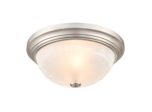 Flush Mount Fixture - Satin Nickel - Faux Alabaster Glass - 13in. Diameter - E26 Medium Base