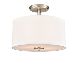 Guyten Semi-Flush Mount Fixture - Brushed Nickel - White Fabric Shade - 13in. Diameter - E26 Medium Base