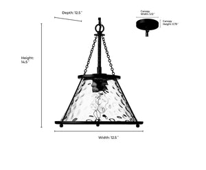 Javis Pendant - Matte Black - Clear Water Glass - 12.5in. Diameter - E26 Medium Base