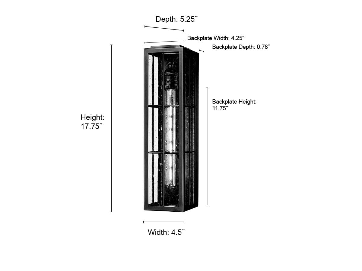 Jaxson Outdoor Wall Sconce - Powder Coated Black - Clear Seeded Glass - 5.25in. Extension - E26 Medium Base