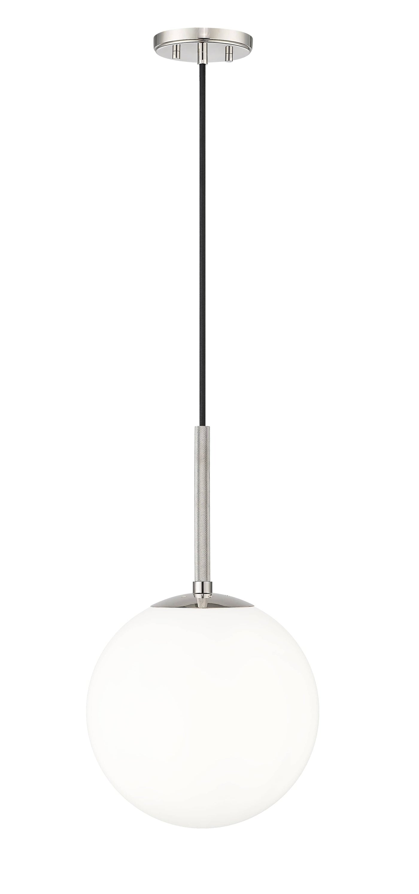 Kairo Pendant Fixture - Polished Nickel - Shiny Opal Glass - 12in. Diameter - E26 Medium Base