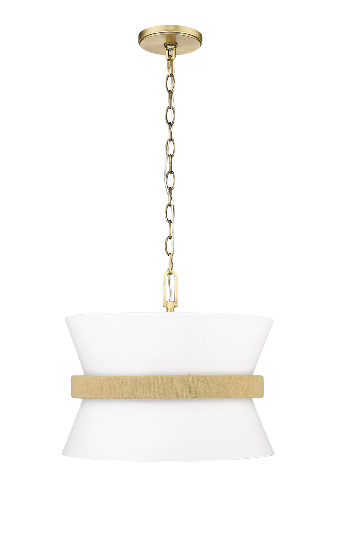 Kimbry Pendant - Vintage Brass - Fabric Shade - 16.1in. Diameter - E12 Candelabra Base
