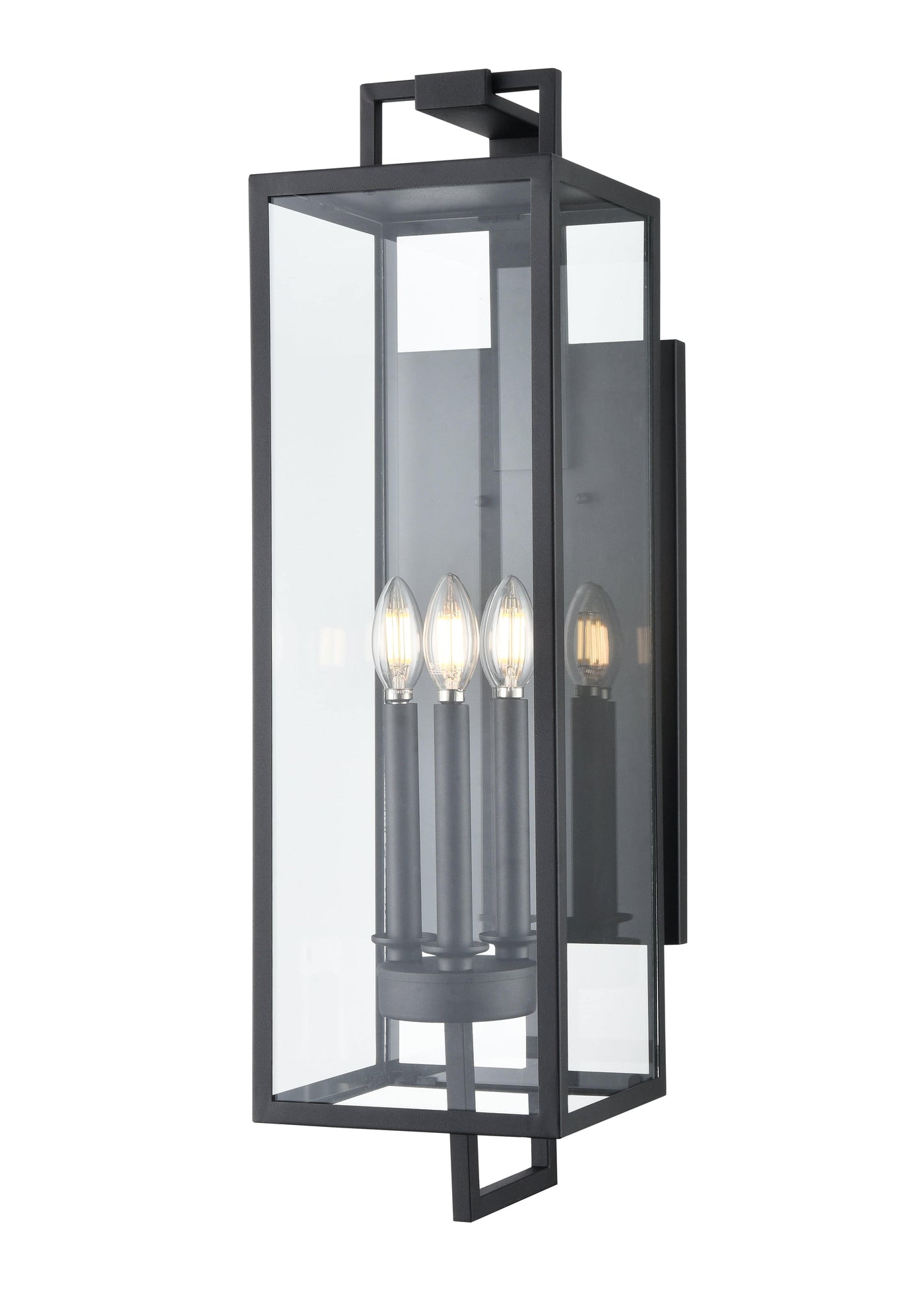 A contemporary interpretation of gothic Victorian design, the Lamont Collection of outdoor lighting is designed to make a bold visual impact on any entryway.The succinct lines of the steel framework create an elongated fixture finished in textured black.The partial, clear glass panels reveal classic-style candles in... View More