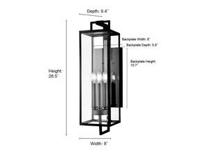 Lamont Outdoor Wall Sconce - Textured Black - Clear Glass - 9.4in. Extension - E26 Candelabra Base