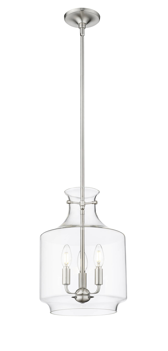 Mahannah Pendant - Brushed Nickel - Clear Glass - 11in. Diameter - E12 Candelabra Base