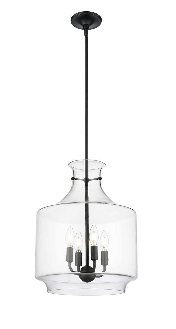 Mahannah Pendant - Matte Black - Clear Glass - 15in. Diameter - E12 Candelabra Base