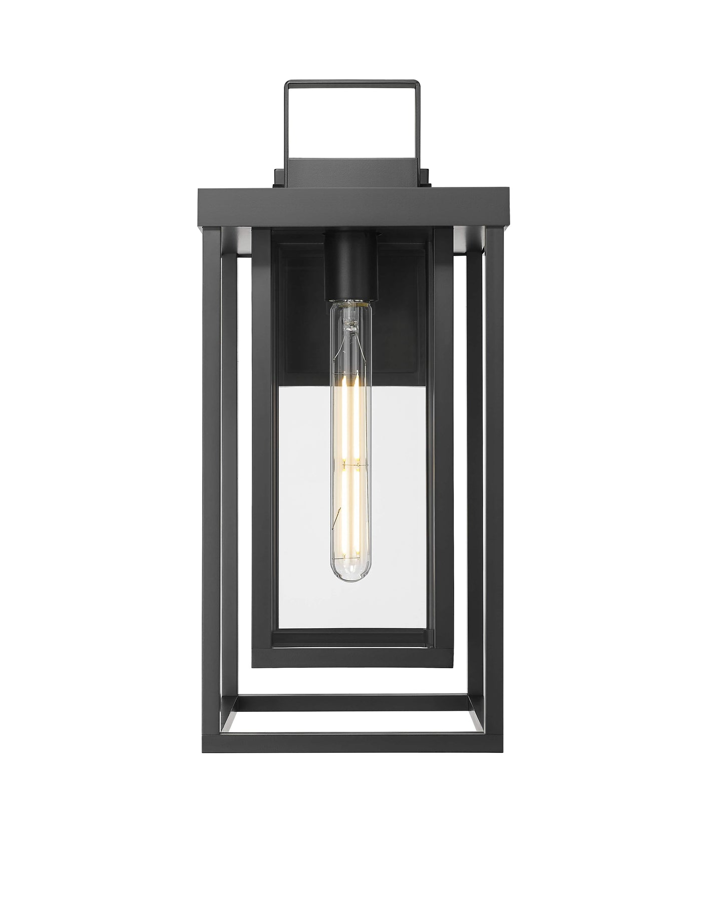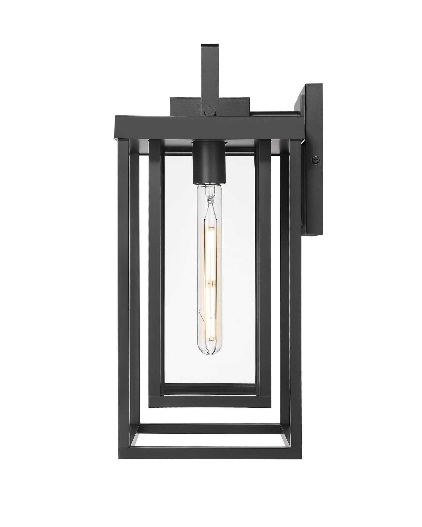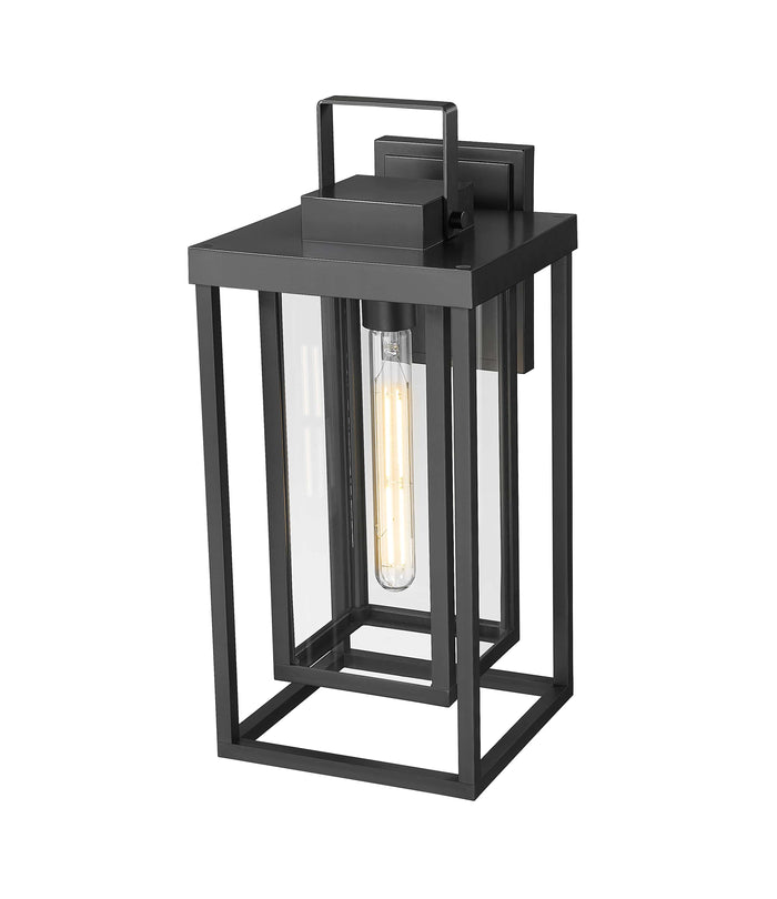 McDonough Outdoor Wall Sconce - Powder Coated Black - Clear Glass - 9in. Extension - E26 Medium Base